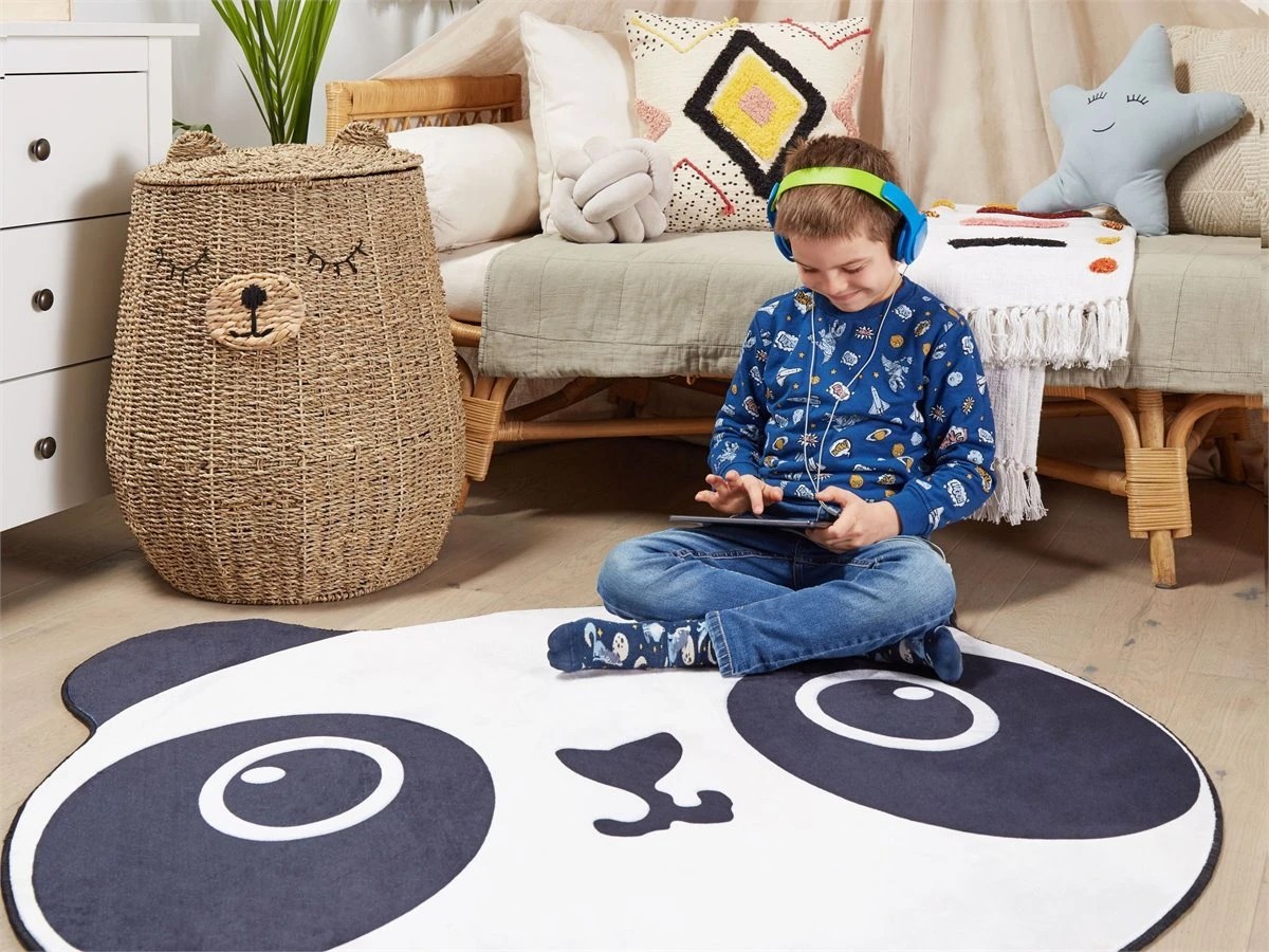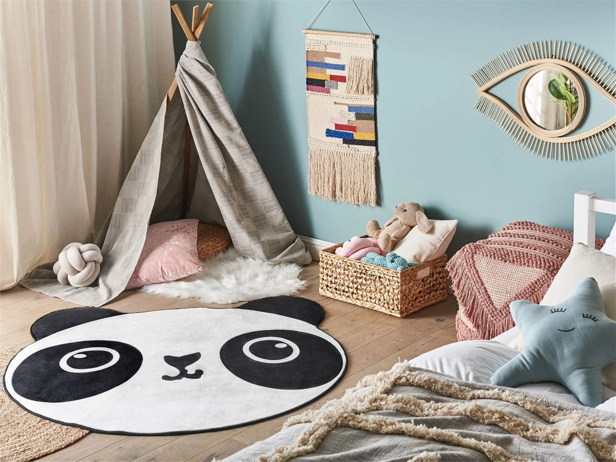 Alfombra de habitación infantil. Añade una nota de color a tu habitación infantil con esta alfombra decorativa. Está fabricada a partir de tela de poliéster suave al tacto y de fácil mantenimiento. El patrón constituido por la cara de un oso panda llama la atención de los más pequeños de la casa. La parte inferior antideslizante protege de un posible resbalón. Ideal para las habitaciones más concurridas de la casa. Detalles: Tipo de Producto: Alfombra para niños Color: Negro Tipo de material: Tejido Material principal: Poliéster Material de respaldo: Poliéster Composición del Material: 100% Poliéster Forma: Animal Parte inferior antideslizante: Sí Densidad: 500 Diseño: Impreso Apto para calefacción por suelo radiante: Sí Costura: Tejido a máquina Dimensiones: Altura del pelo: 1 cm Ancho: 120 cm Longitud: 120 cm Peso: 1.7 kg La oferta incluye: 1 x Alfombra Ventajas: Apto para calefacción por suelo radiante, El fondo antideslizante evita que la alfombra se mueva, Crea un ambiente acogedor, Colores elegantes y diseño original, Alta calidad Información adicional: Después de desembalar, el producto tarda aproximadamente 72 horas en obtener la forma deseada. Para conseguir el mejor resultado, recomendamos desdoblarlo lo antes posible y colocar un peso en los extremos. Consejos de mantenimiento: Poliéster: 1.Periódicamente, gire su alfombra 180 ̊ para garantizar un desgaste uniforme y evitar la decoloración causada por la exposición al sol 2.Para manchas difíciles, límpie la superficie con un paño de algodón húmedo que no manche. Si es necesario, use un líquido de lavado de lana. No moje demasiado la alfombra y sequela después de limpiar. Use solo limpiadores recomendados para alfombras. Póngase en contacto con un experto para la eliminación de manchas difíciles 3.Aspire una vez por semana con una potencia de succión media utilizando un accesorio de tapicería, en la dirección de la pila 4.Para un uso cómodo, recomendamos ventilar la alfombra desempacada durante al menos unas horas (lo mejor sería uno o dos días. Esto permite que el olor natural del material se desvanezca 5.Elimine cualquier mancha inmediatamente con un paño húmedo que no manche. Limpie desde el borde hasta la mitad de la alfombra, no frote.