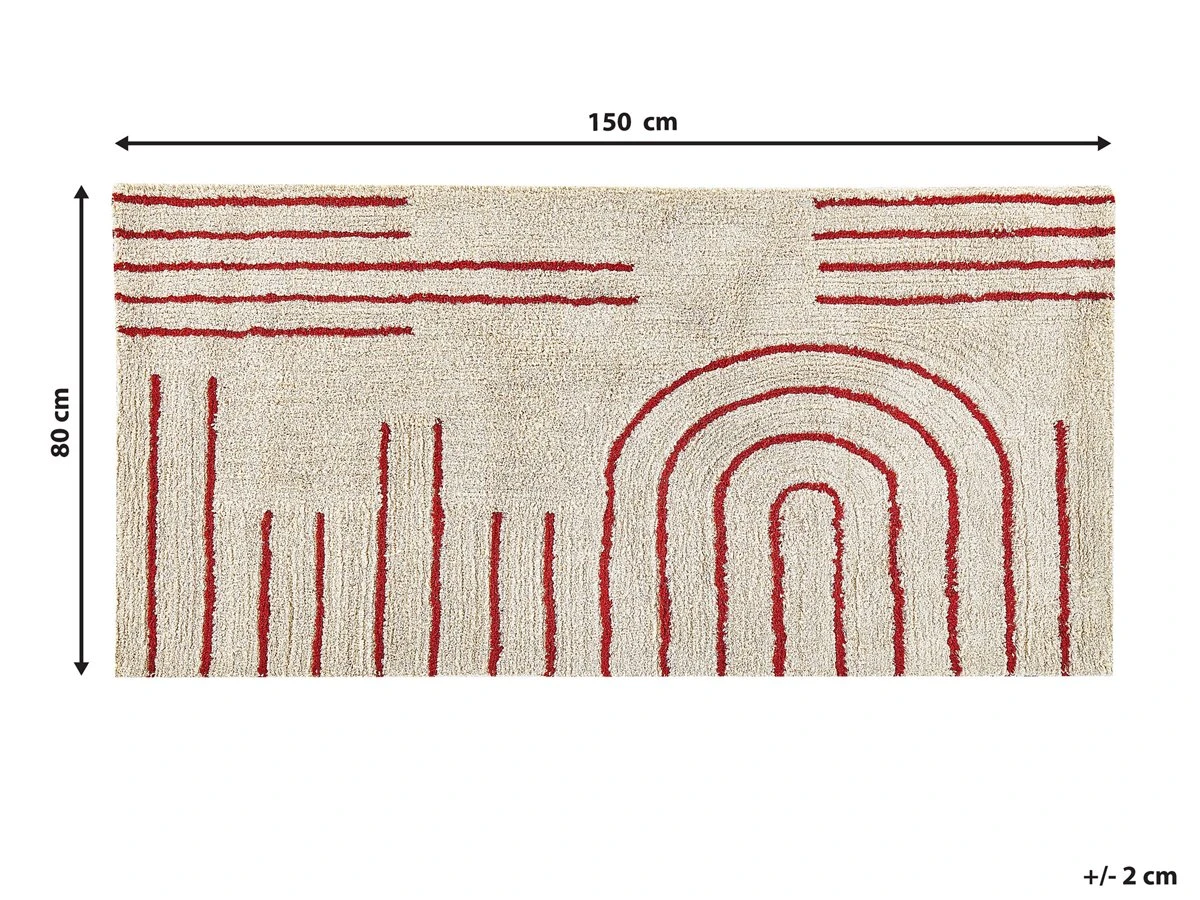 Alfombra de diseño minimalista. Añade un toque escandinavo a tu sala de estar, dormitorio o recibidor con esta alfombra. Está fabricada a partir de algodón de alta calidad. El patrón minimalista llama poderosamente la atención. Se puede utilizar en interiores con suelo radiante. Detalles: Tipo de Producto: Alfombra de pelo corto Estilo: Moderno Color: Beige Tipo de material: Tejido Material principal: Algodón Material de respaldo: Algodón Composición del Material: 100% Algodón Forma: Rectangular Parte inferior antideslizante: No Densidad: 2500 Diseño: Geométrico Apto para calefacción por suelo radiante: Sí Costura: Copetudo Dimensiones: Altura del pelo: 1 cm Ancho: 80 cm Longitud: 150 cm Peso: 3 kg La oferta incluye: 1 x Alfombra Ventajas: Apto para calefacción por suelo radiante, Estilo escandinavo minimalista, Colores elegantes y diseño original, Ideal para todo tipo de decoración, Materiales de la más alta calidad Información de montaje: No requiere montaje Información adicional: Puede perder pelo de forma ocasional. Se trata de un proceso natural y no un defecto de calidad del producto. Consejos de mantenimiento: Algodón: 1.Para manchas difíciles, límpie la superficie con un paño de algodón húmedo que no manche. Si es necesario, use un líquido de lavado de lana. No moje demasiado la alfombra y sequela después de limpiar. Use solo limpiadores recomendados para alfombras. Póngase en contacto con un experto para la eliminación de manchas difíciles 2.Aspire una vez por semana con una potencia de succión media utilizando un accesorio de tapicería, en la dirección de la pila 3.Para un uso cómodo, recomendamos ventilar la alfombra desempacada durante al menos unas horas (lo mejor sería uno o dos días. Esto permite que el olor natural del material se desvanezca 4.Elimine cualquier mancha inmediatamente con un paño húmedo que no manche. Limpie desde el borde hasta la mitad de la alfombra, no frote 5.Periódicamente, gire su alfombra 180 ̊ para garantizar un desgaste uniforme y evitar la decoloración causada por la exposición al sol.