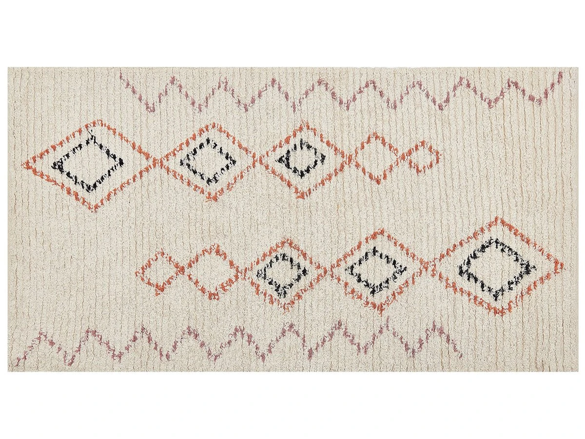 Alfombra de patrón geométrico. Añade un toque acogedor a tu sala de estar o dormitorio con esta alfombra. Está fabricada a mano a partir de algodón de alta calidad. El patrón geométrico combina bien en cualquier interior de inspiración boho. Detalles: Tipo de Producto: Alfombra de pelo corto Estilo: Moderno Color: Beige Tipo de material: Tejido Material principal: Algodón Composición del Material: 100% Algodón Forma: Rectangular Parte inferior antideslizante: No Densidad: 825 Diseño: Geométrico Apto para calefacción por suelo radiante: Sí Costura: Fabricado a mano Dimensiones: Altura del pelo: 1.4 cm Ancho: 80 cm Longitud: 150 cm Peso: 1 kg La oferta incluye: 1 x Alfombra Ventajas: Apto para calefacción por suelo radiante, Elaboración impecable, Combina con cualquier estilo de interior, Decorativo y funcional, Materiales de la más alta calidad, No requiere mantenimiento regular Información de montaje: No requiere montaje Información adicional: Puede perder pelo de forma ocasional. Se trata de un proceso natural y no un defecto de calidad del producto. Después de desembalar, el producto tarda aproximadamente 72 horas en obtener la forma deseada. Para conseguir el mejor resultado, recomendamos desdoblarlo lo antes posible y colocar un peso en los extremos. Consejos de mantenimiento: Algodón: 1.Periódicamente, gire su alfombra 180 ̊ para garantizar un desgaste uniforme y evitar la decoloración causada por la exposición al sol 2.Para manchas difíciles, límpie la superficie con un paño de algodón húmedo que no manche. Si es necesario, use un líquido de lavado de lana. No moje demasiado la alfombra y sequela después de limpiar. Use solo limpiadores recomendados para alfombras. Póngase en contacto con un experto para la eliminación de manchas difíciles 3.Aspire una vez por semana con una potencia de succión media utilizando un accesorio de tapicería, en la dirección de la pila 4.Para un uso cómodo, recomendamos ventilar la alfombra desempacada durante al menos unas horas (lo mejor sería uno o dos días. Esto permite que el olor natural del material se desvanezca 5.Elimine cualquier mancha inmediatamente con un paño húmedo que no manche. Limpie desde el borde hasta la mitad de la alfombra, no frote.