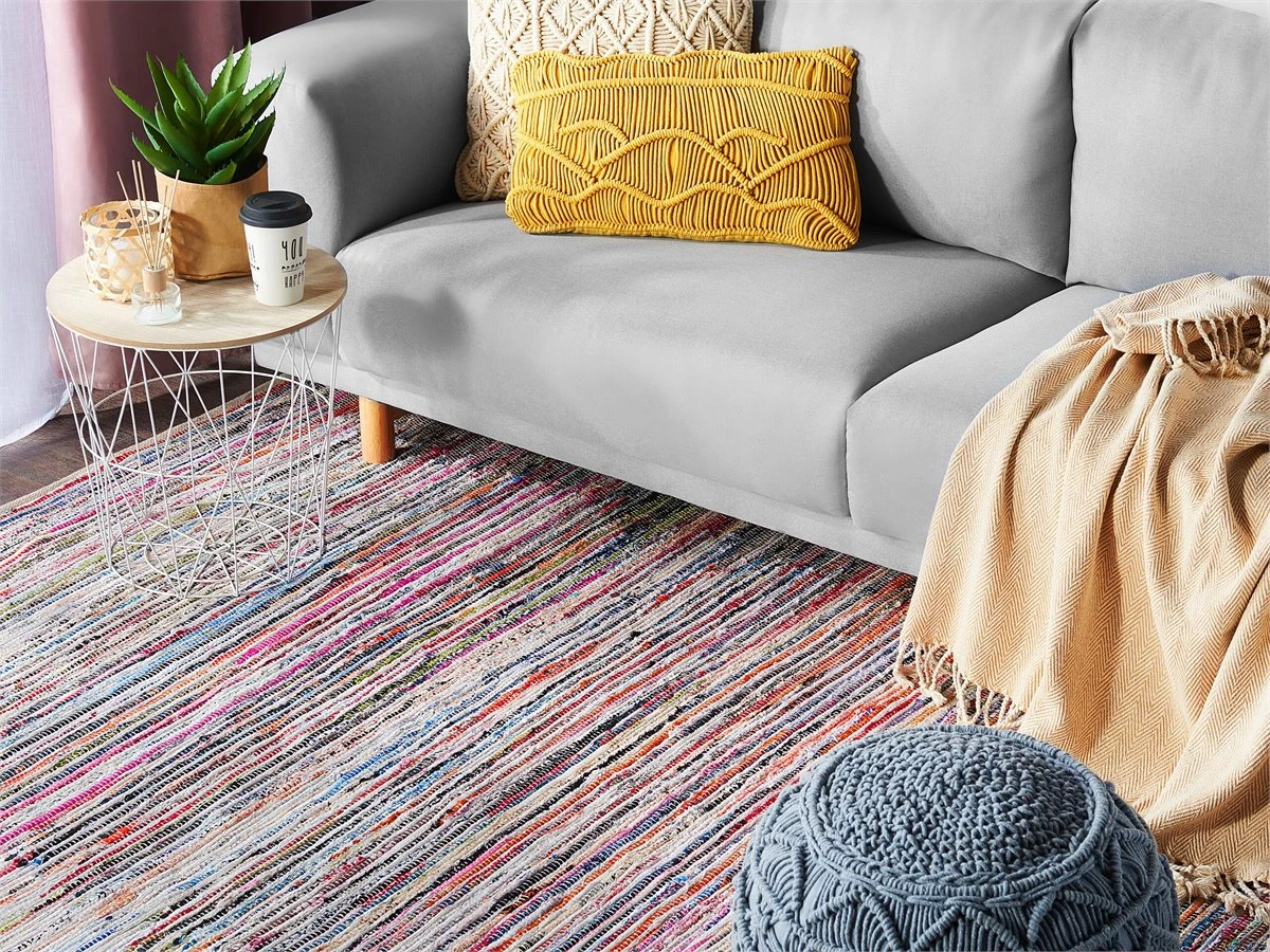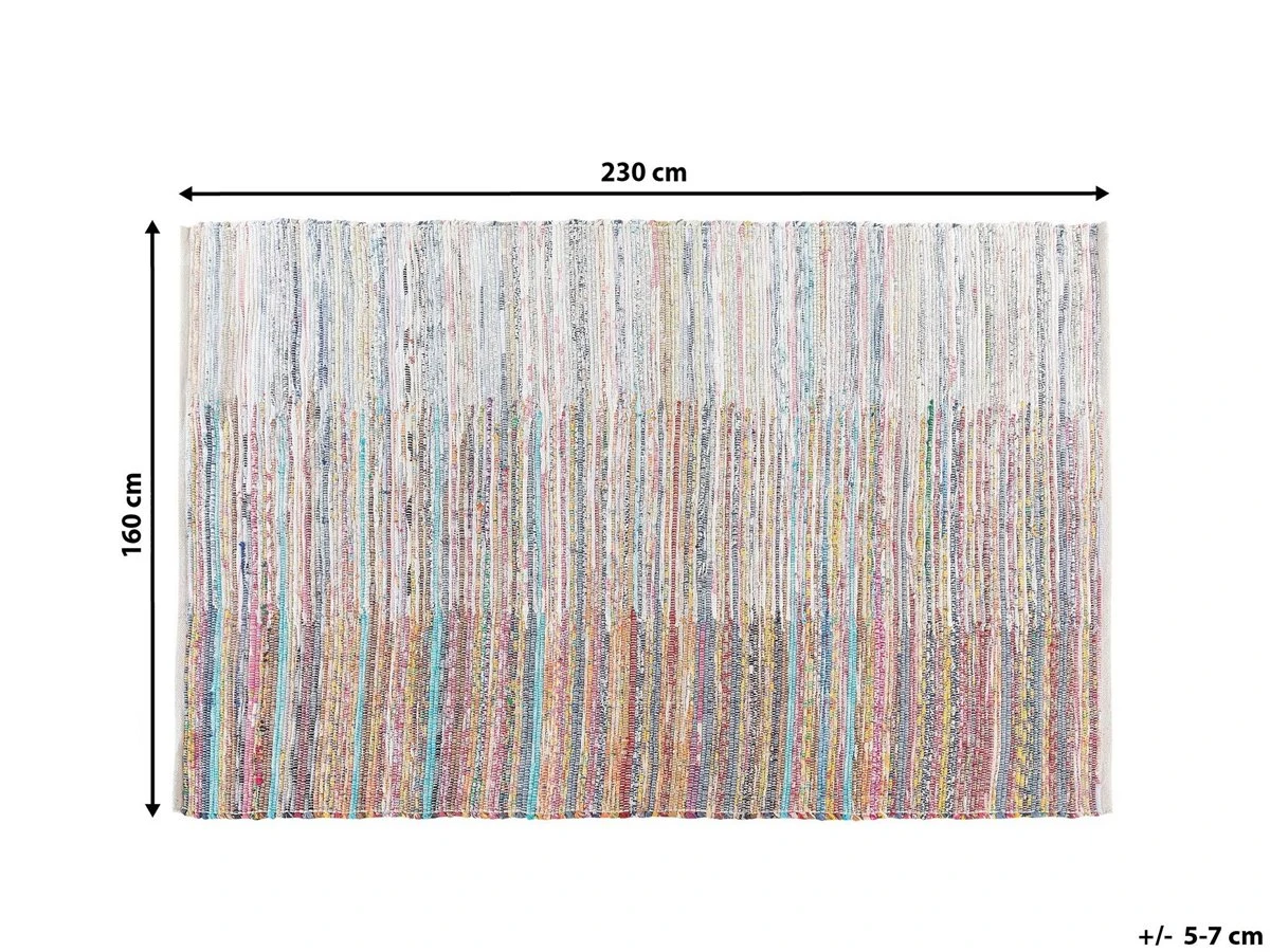 Alfombra de pelo corto. Dale un toque de distinción a tu interior con esta alfombra de estilo boho. Está fabricada a mano a partir de algodón de alta calidad y suave al tacto. Combina bien en cualquier sala de estar o recibidor. Detalles: Tipo de Producto: Trenzado Estilo: Boho Color: Azul Tonalidad: Turquesa Tipo de material: Tejido Material principal: Algodón Composición del Material: 100% Algodón Forma: Rectangular Parte inferior antideslizante: No Diseño: De rayas Apto para calefacción por suelo radiante: Sí Costura: Tejido a mano Dimensiones: Altura del pelo: 1 cm Ancho: 160 cm Longitud: 230 cm Peso: 7 kg La oferta incluye: 1 x Alfombra Ventajas: Apto para calefacción por suelo radiante, Combina con todo tipo de decoración, Combinación de colores fascinante, Fabricación con materiales reciclados, Acabado preciso Información de montaje: No requiere montaje Información adicional: Por favor nota que debido a que la alfombra es tejida a mano, cada pieza puede variar ligeramente en términos de color, patrón y/o tamaño (+/- 5-7 cm. Este tipo de ligeras variaciones no se consideran un defecto, Puede perder pelo de forma ocasional. Se trata de un proceso natural y no un defecto de calidad del producto. Consejos de mantenimiento: Algodón: 1.Para manchas difíciles, límpie la superficie con un paño de algodón húmedo que no manche. Si es necesario, use un líquido de lavado de lana. No moje demasiado la alfombra y sequela después de limpiar. Use solo limpiadores recomendados para alfombras. Póngase en contacto con un experto para la eliminación de manchas difíciles 2.Aspire una vez por semana con una potencia de succión media utilizando un accesorio de tapicería, en la dirección de la pila 3.Para un uso cómodo, recomendamos ventilar la alfombra desempacada durante al menos unas horas (lo mejor sería uno o dos días. Esto permite que el olor natural del material se desvanezca 4.Elimine cualquier mancha inmediatamente con un paño húmedo que no manche. Limpie desde el borde hasta la mitad de la alfombra, no frote 5.Periódicamente, gire su alfombra 180 ̊ para garantizar un desgaste uniforme y evitar la decoloración causada por la exposición al sol.