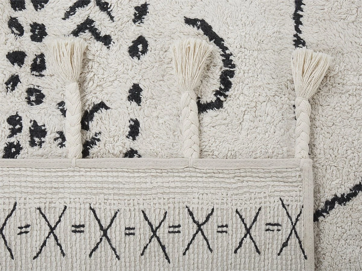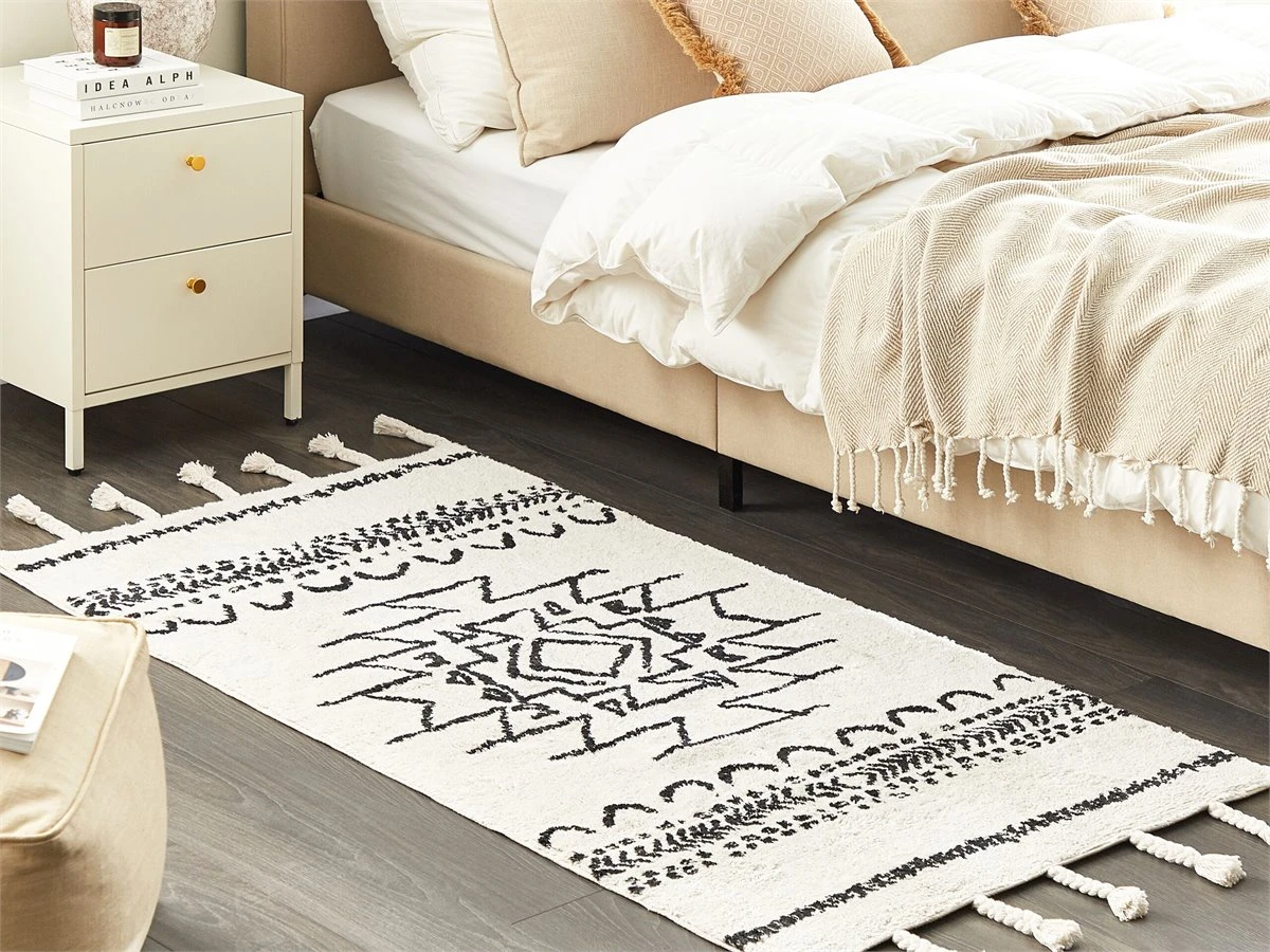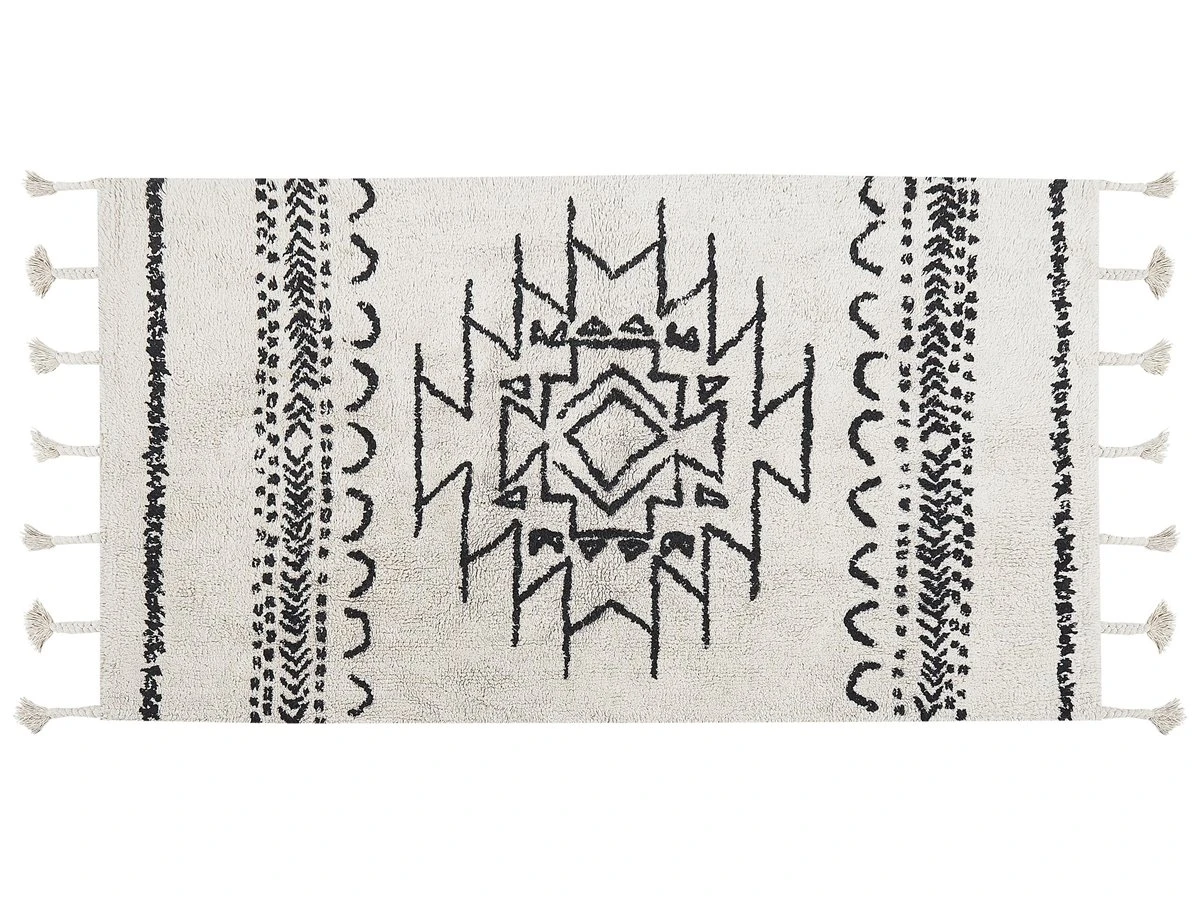 Alfombra de patrón oriental. Añade un toque acogedor a tu sala de estar o dormitorio con esta alfombra. Está fabricada a mano a partir de algodón de alta calidad. El patrón geométrico y las borlas decorativas aportan una nota oriental al diseño. Combina bien situada al lado del sofá o de la cama. Detalles: Tipo de Producto: Alfombra de pelo corto Estilo: Boho Color: Blanco Tonalidad: Blanco crema Tipo de material: Tejido Material principal: Algodón Composición del Material: 100% Algodón Forma: Rectangular Parte inferior antideslizante: No Densidad: 2100 Diseño: Geométrico Apto para calefacción por suelo radiante: Sí Costura: Fabricado a mano Dimensiones: Altura del pelo: 2 cm Ancho: 80 cm Longitud: 150 cm Peso: 2.4 kg La oferta incluye: 1 x Alfombra Ventajas: Apto para calefacción por suelo radiante, Hecho a mano con la máxima precisión, Pieza muy llamativa, Crea un ambiente acogedor, Materiales de la más alta calidad, Detalles perfectos, Fibras suaves para una sensación agradable Información de montaje: No requiere montaje Información adicional: Puede perder pelo de forma ocasional. Se trata de un proceso natural y no un defecto de calidad del producto. Por favor nota que debido a que la alfombra es tejida a mano, cada pieza puede variar ligeramente en términos de color, patrón y/o tamaño (+/- 5-7 cm. Este tipo de ligeras variaciones no se consideran un defecto, Después de desembalar, el producto tarda aproximadamente 72 horas en obtener la forma deseada. Para conseguir el mejor resultado, recomendamos desdoblarlo lo antes posible y colocar un peso en los extremos. Consejos de mantenimiento: Algodón: 1.Para un uso cómodo, recomendamos ventilar la alfombra desempacada durante al menos unas horas (lo mejor sería uno o dos días. Esto permite que el olor natural del material se desvanezca 2.Elimine cualquier mancha inmediatamente con un paño húmedo que no manche. Limpie desde el borde hasta la mitad de la alfombra, no frote 3.Periódicamente, gire su alfombra 180 ̊ para garantizar un desgaste uniforme y evitar la decoloración causada por la exposición al sol 4.Para manchas difíciles, límpie la superficie con un paño de algodón húmedo que no manche. Si es necesario, use un líquido de lavado de lana. No moje demasiado la alfombra y sequela después de limpiar. Use solo limpiadores recomendados para alfombras. Póngase en contacto con un experto para la eliminación de manchas difíciles 5.Aspire una vez por semana con una potencia de succión media utilizando un accesorio de tapicería, en la dirección de la pila.