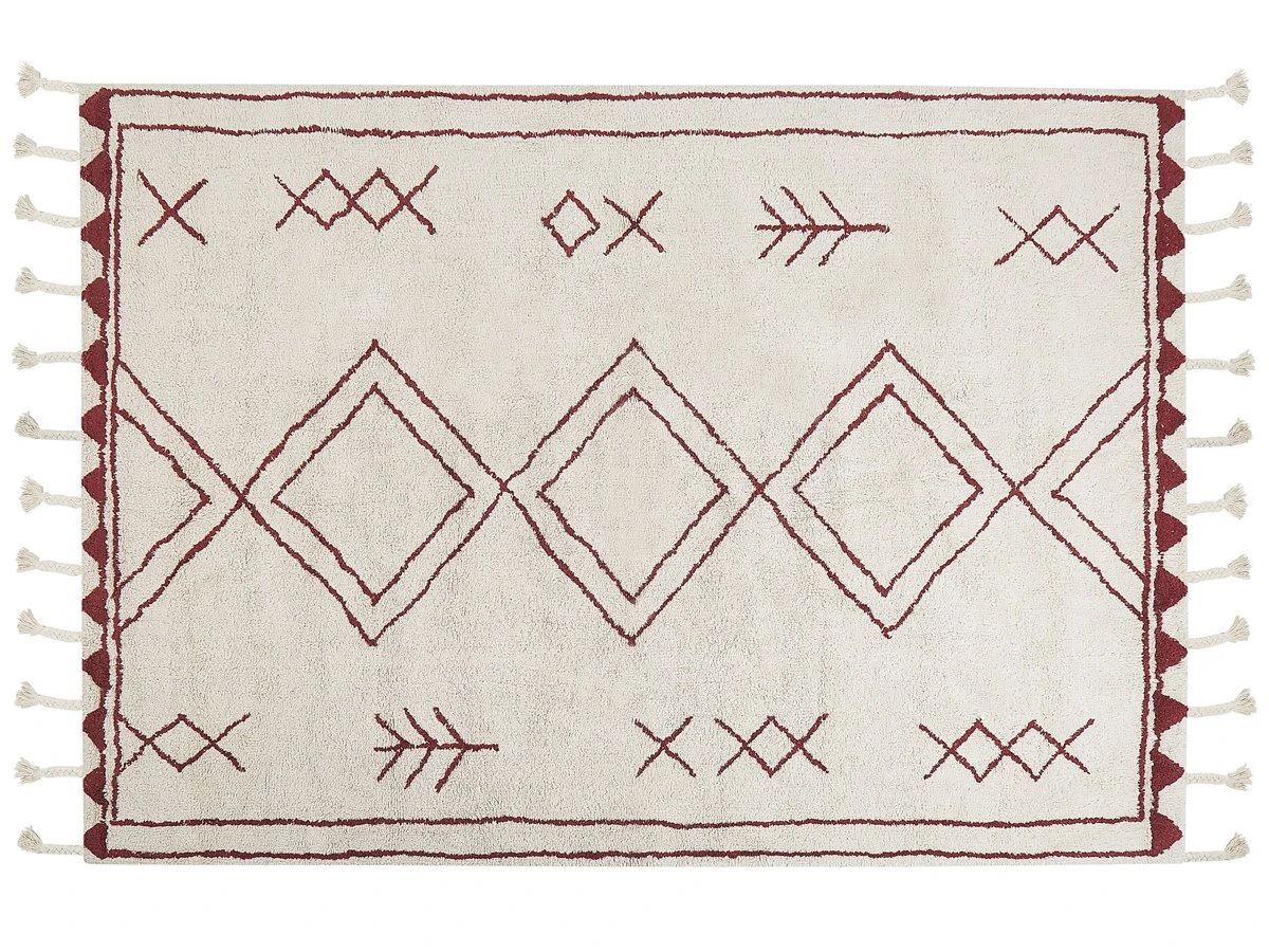 Alfombra de patrón oriental. Añade un toque acogedor a tu sala de estar o dormitorio con esta alfombra. Está fabricada a partir de algodón de alta calidad y suave al tacto. El patrón geométrico y las borlas decorativas aportan una nota tribal al diseño. Detalles: Tipo de Producto: Alfombra de pelo corto Estilo: Boho Color: Blanco Tonalidad: Blanco crema Tipo de material: Tejido Material principal: Algodón Composición del Material: 100% Algodón Forma: Rectangular Parte inferior antideslizante: No Densidad: 2100 Diseño: Geométrico Apto para calefacción por suelo radiante: Sí Costura: Fabricado a mano Dimensiones: Altura del pelo: 2 cm Ancho: 140 cm Longitud: 200 cm Peso: 5.7 kg La oferta incluye: 1 x Alfombra Ventajas: Apto para calefacción por suelo radiante, Hecho a mano con la máxima precisión, Pieza muy llamativa, Crea un ambiente acogedor, Materiales de la más alta calidad, Detalles perfectos, Fibras suaves para una sensación agradable Información de montaje: No requiere montaje Información adicional: Puede perder pelo de forma ocasional. Se trata de un proceso natural y no un defecto de calidad del producto. Por favor nota que debido a que la alfombra es tejida a mano, cada pieza puede variar ligeramente en términos de color, patrón y/o tamaño (+/- 5-7 cm. Este tipo de ligeras variaciones no se consideran un defecto, Después de desembalar, el producto tarda aproximadamente 72 horas en obtener la forma deseada. Para conseguir el mejor resultado, recomendamos desdoblarlo lo antes posible y colocar un peso en los extremos. Consejos de mantenimiento: Algodón: 1.Para manchas difíciles, límpie la superficie con un paño de algodón húmedo que no manche. Si es necesario, use un líquido de lavado de lana. No moje demasiado la alfombra y sequela después de limpiar. Use solo limpiadores recomendados para alfombras. Póngase en contacto con un experto para la eliminación de manchas difíciles 2.Aspire una vez por semana con una potencia de succión media utilizando un accesorio de tapicería, en la dirección de la pila 3.Para un uso cómodo, recomendamos ventilar la alfombra desempacada durante al menos unas horas (lo mejor sería uno o dos días. Esto permite que el olor natural del material se desvanezca 4.Elimine cualquier mancha inmediatamente con un paño húmedo que no manche. Limpie desde el borde hasta la mitad de la alfombra, no frote 5.Periódicamente, gire su alfombra 180 ̊ para garantizar un desgaste uniforme y evitar la decoloración causada por la exposición al sol.