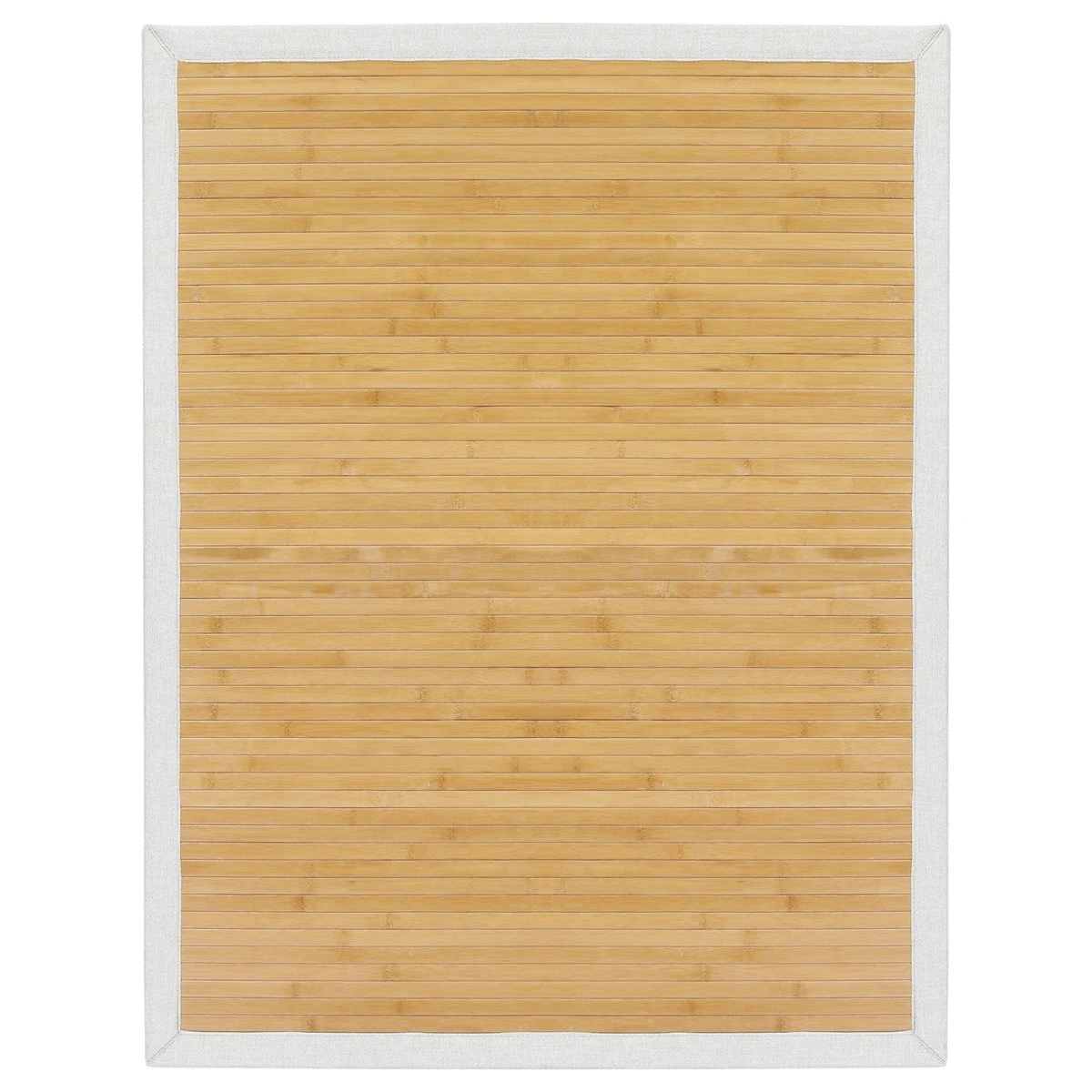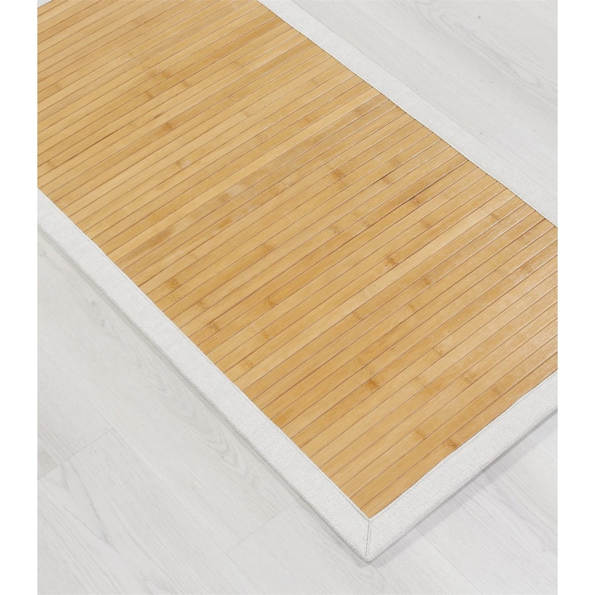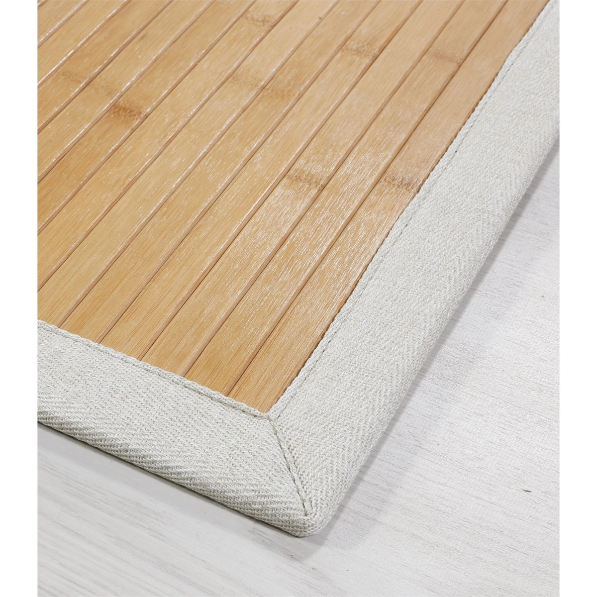 En el mundo de la decoración textil para hogar, las alfombras de bambú naturales de Mundo Alfombra son un elemento que se utiliza desde hace muchos años, ya que se trata de un producto natural, con un aspecto muy confortable, que podemos hacer a medida, y que posee muy buenas características técnicas.Nos preocupamos de que nuestros materiales sean de la máxima calidad posible.En este caso, nuestros rollos de bambú, están tejidos con lamas en sus tonos naturales, ya que encajan perfectamente en la mayoría de decoraciones y hogares.Estas lamas son de 2 cm de ancha y 3.2 mm de gruesas, con lo que se consigue una alfombra mucho más resistente al uso y al tiempo. Las lamas, vienen imprimadas con aceite de color transparente, que ayudan a impermeabilizar la lama, dar un toque de brillo y facilitar la limpieza.Nuestras alfombras de bambú tienen una base antideslizante adherida de fieltro con puntos de pvc, que ayudan a retener la alfombra y que ayuda a que permanezca en su sitio frente a los movimientos normales de las pisadas.En este caso las acabamos con Cenefa de Tela PE de color Marfil, perfectas a juego.