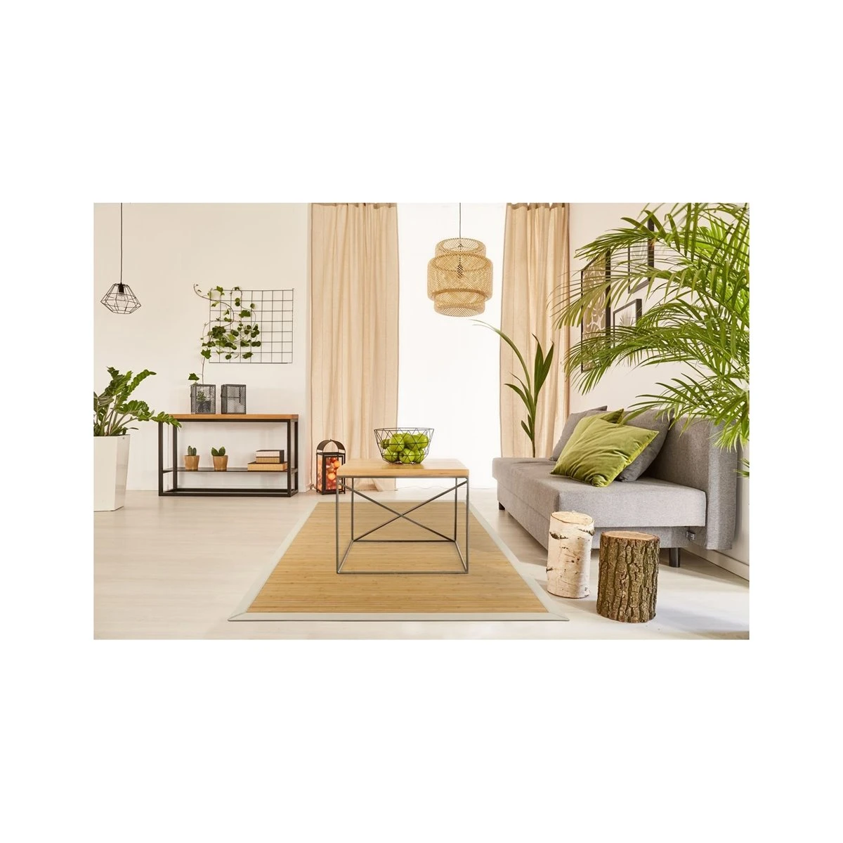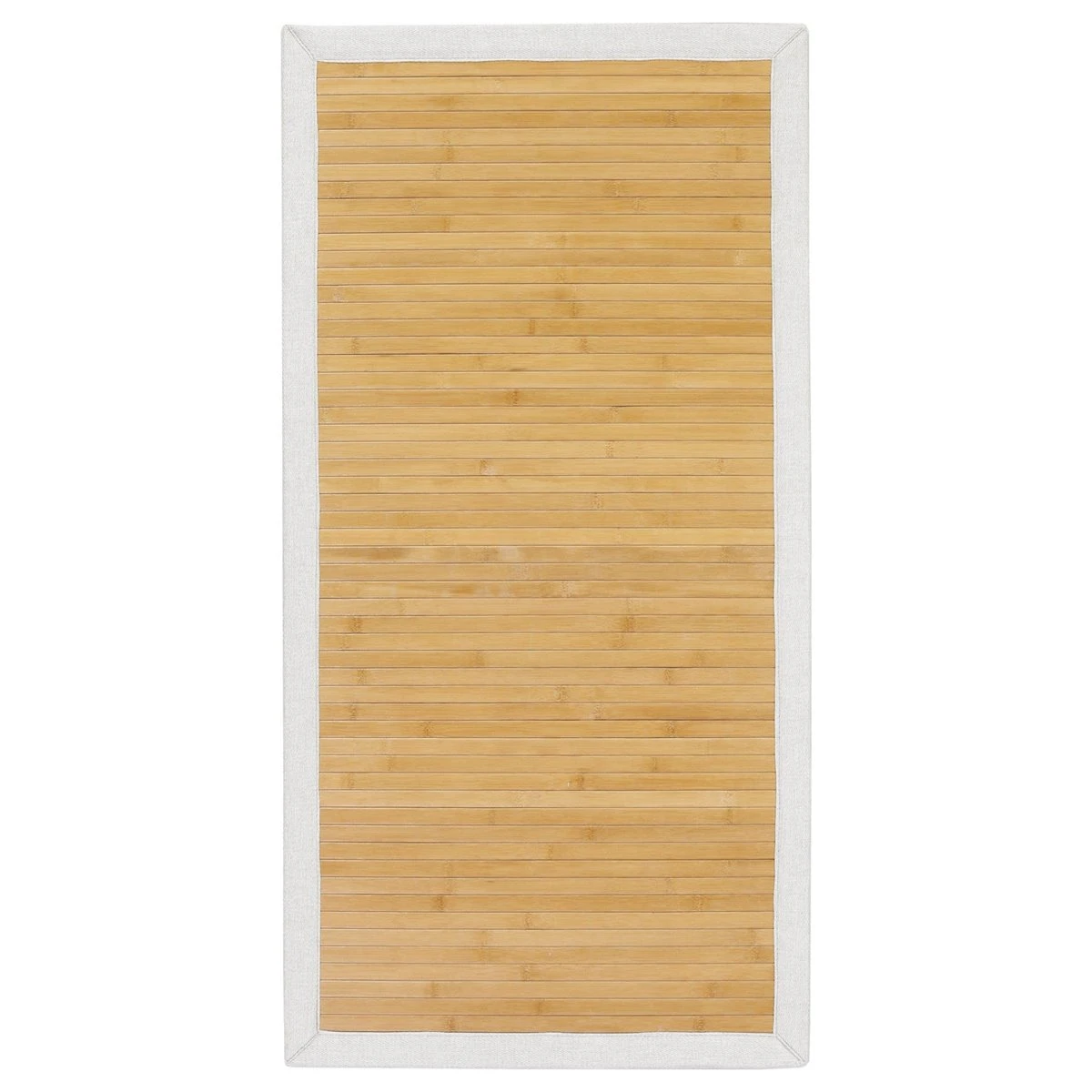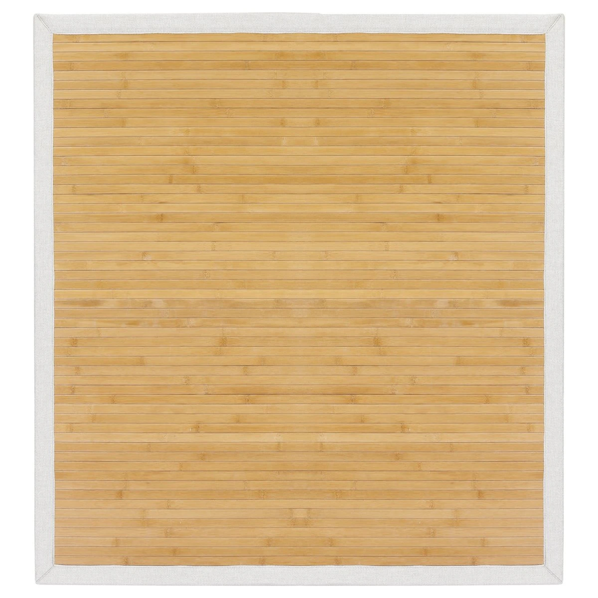 En el mundo de la decoración textil para hogar, las alfombras de bambú naturales de Mundo Alfombra son un elemento que se utiliza desde hace muchos años, ya que se trata de un producto natural, con un aspecto muy confortable, que podemos hacer a medida, y que posee muy buenas características técnicas.Nos preocupamos de que nuestros materiales sean de la máxima calidad posible.En este caso, nuestros rollos de bambú, están tejidos con lamas en sus tonos naturales, ya que encajan perfectamente en la mayoría de decoraciones y hogares.Estas lamas son de 2 cm de ancha y 3.2 mm de gruesas, con lo que se consigue una alfombra mucho más resistente al uso y al tiempo. Las lamas, vienen imprimadas con aceite de color transparente, que ayudan a impermeabilizar la lama, dar un toque de brillo y facilitar la limpieza.Nuestras alfombras de bambú tienen una base antideslizante adherida de fieltro con puntos de pvc, que ayudan a retener la alfombra y que ayuda a que permanezca en su sitio frente a los movimientos normales de las pisadas.En este caso las acabamos con Cenefa de Tela PE de color Marfil, perfectas a juego.