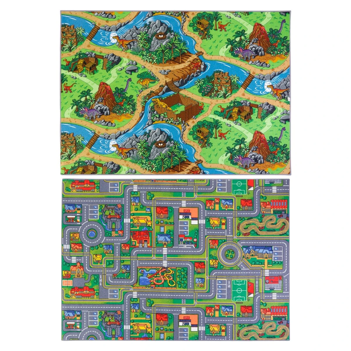 Esta alfombra de carreteras y dinosaurios será la pieza clave en la zona de juegos de los más peques. Deja volar la imaginación de tus hijos combinando dos mundos totalmente distintos, pero que tanto gustan: Coches y dinosaurios.