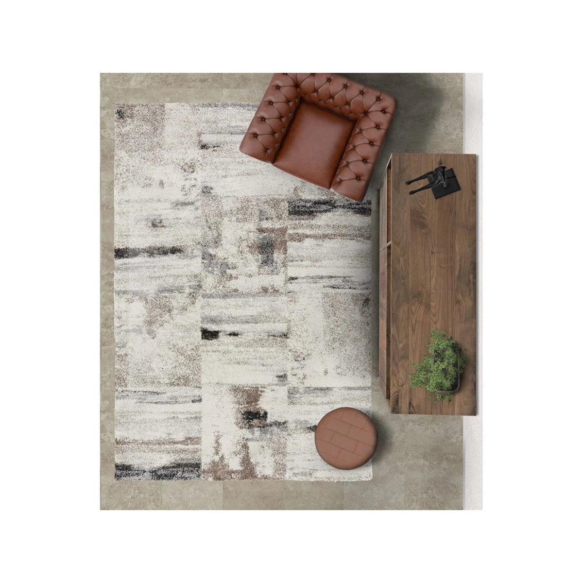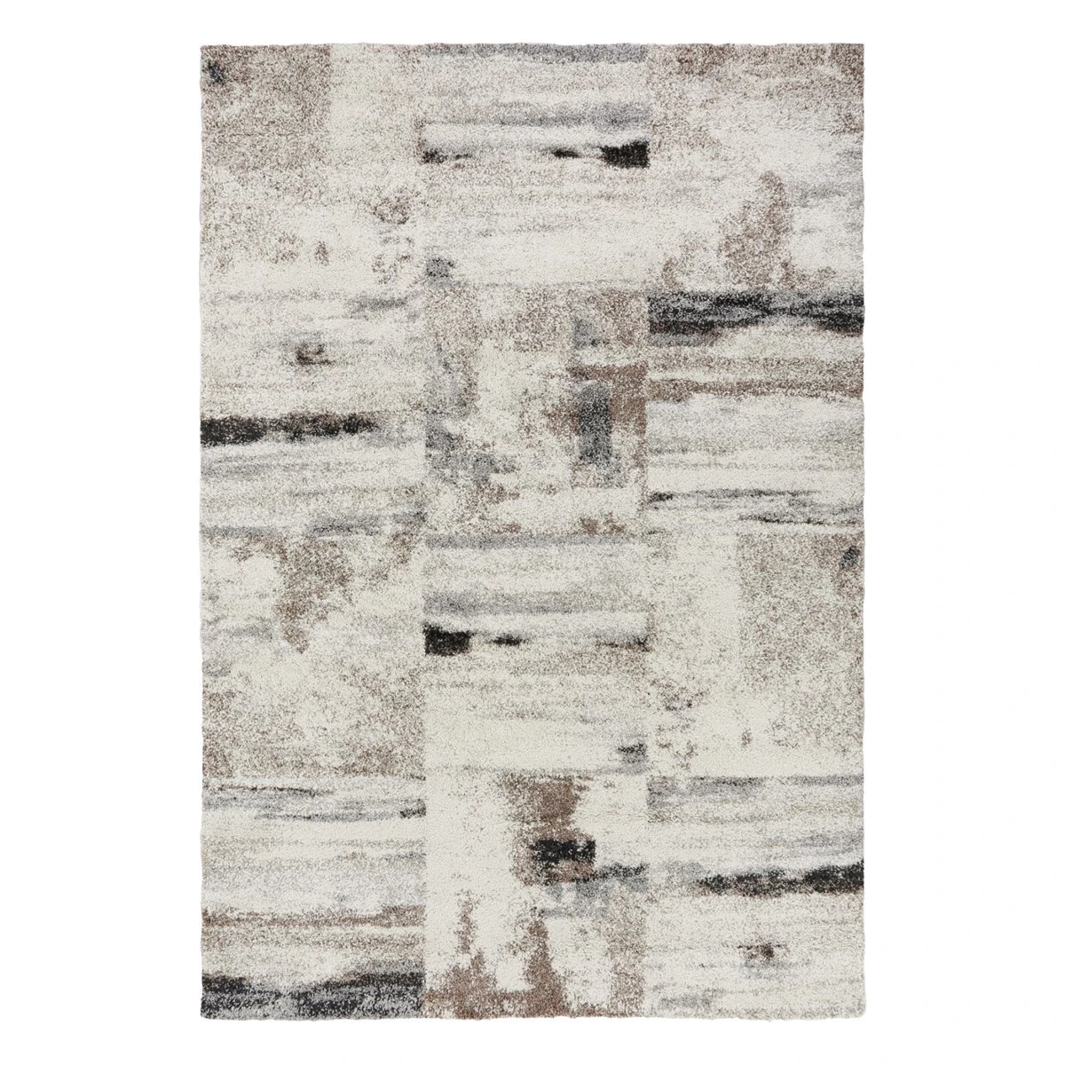 Alfombra abstracta de pelo semi largo, con buen tacto y mullida a la pisada. El modelo Mehari 125 es una alfombra moderna, de estilo abstracto, que combina hilos de distintos colores: blancos, gris claro, negro y cobre. Su diseño está muy bien elaborado, además de ser muy decorativo, su efecto jaspeado consigue que la alfombra sea muy sufrida en el día a día.