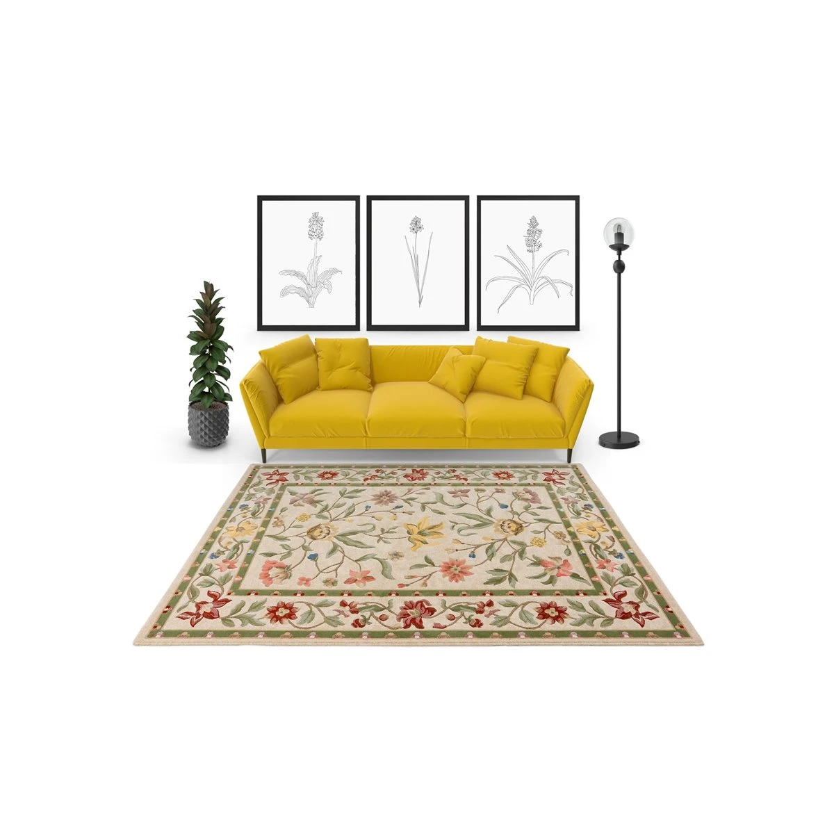Gracias a su combinación de colores, esta alfombra de flores combina con ambientes clásicos y modernos, tradicionales o rurales.