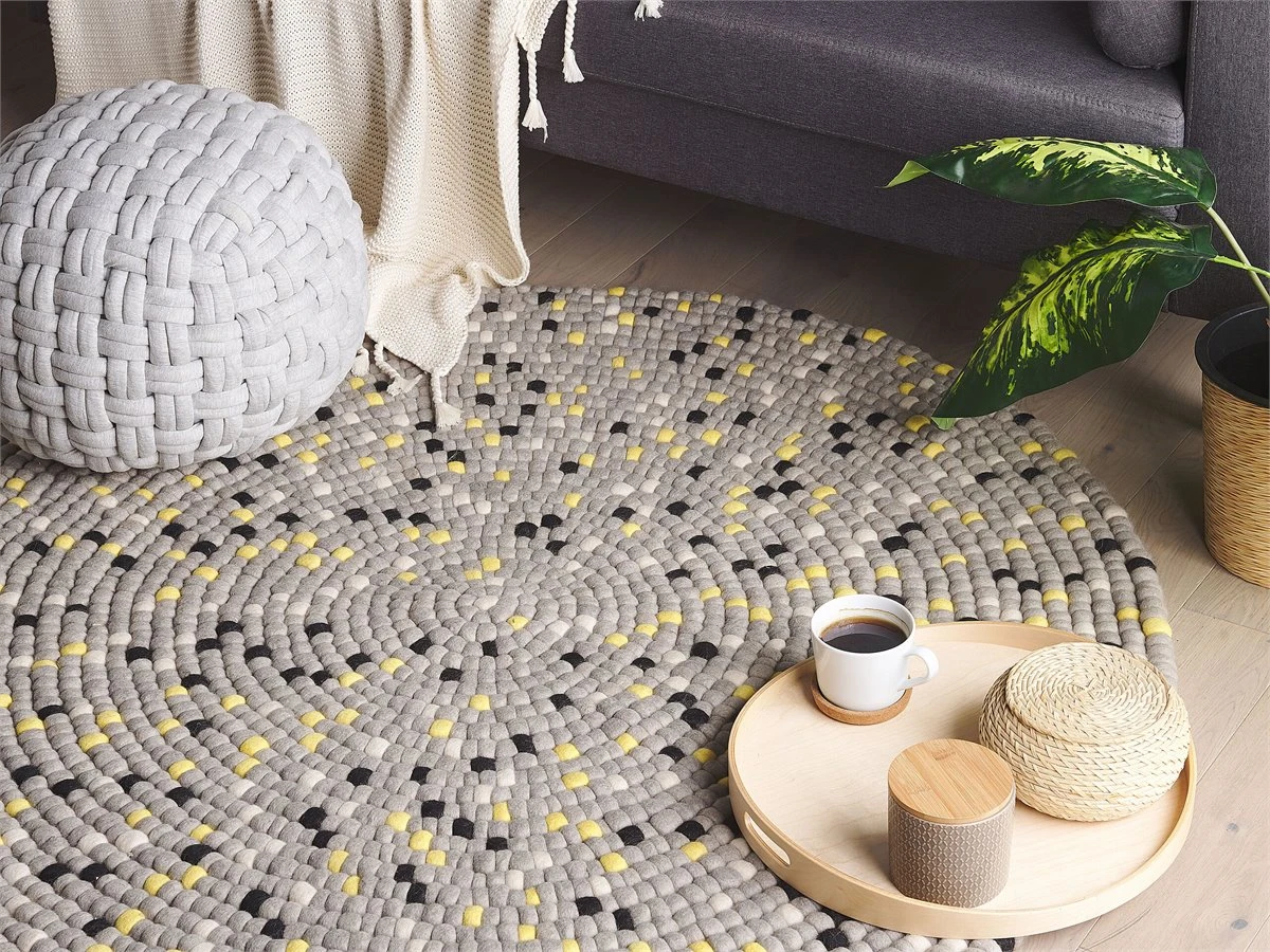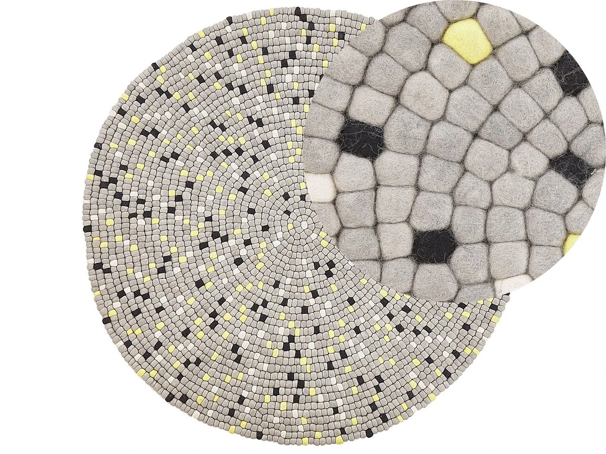 Alfombra de diseño moderno. Esta alfombra de diseño elegante combina bien en cualquier sala de estar, recibidor o habitación infantil. Está fabricada a partir de lana de alta calidad y suave al tacto. El patrón de colores encaja a la perfección en un interior moderno, escandinavo o retro. Detalles: Tipo de Producto: Alfombra de fieltro Estilo: Moderno Color: Gris Tonalidad: Gris claro Tipo de material: Tejido Material principal: Lana Composición del Material: 100% Lana Forma: Redonda Parte inferior antideslizante: No Densidad: 4500 Diseño: Abstracto Apto para calefacción por suelo radiante: Sí Costura: Hecho a mano Dimensiones: Altura del pelo: 3 cm Ancho: 140 cm Longitud: 140 cm Peso: 9 kg La oferta incluye: 1 x Alfombra Ventajas: Apto para calefacción por suelo radiante, Colores elegantes y diseño original, Combina con todo tipo de decoración, Acabado preciso, No requiere mantenimiento regular Información de montaje: No requiere montaje Información adicional: Por favor nota que debido a que la alfombra es tejida a mano, cada pieza puede variar ligeramente en términos de color, patrón y/o tamaño (+/- 5-7 cm. Este tipo de ligeras variaciones no se consideran un defecto, Puede perder pelo de forma ocasional. Se trata de un proceso natural y no un defecto de calidad del producto. Después de desembalar, el producto tarda aproximadamente 72 horas en obtener la forma deseada. Para conseguir el mejor resultado, recomendamos desdoblarlo lo antes posible y colocar un peso en los extremos. Consejos de mantenimiento: Fieltro: 1.Periódicamente, gire su alfombra 180 ̊ para garantizar un desgaste uniforme y evitar la decoloración causada por la exposición al sol 2.Para manchas difíciles, límpie la superficie con un paño de algodón húmedo que no manche. Si es necesario, use un líquido de lavado de lana. No moje demasiado la alfombra y sequela después de limpiar. Use solo limpiadores recomendados para alfombras. Póngase en contacto con un experto para la eliminación de manchas difíciles 3.Aspire una vez por semana con una potencia de succión media utilizando un accesorio de tapicería, en la dirección de la pila 4.Para un uso cómodo, recomendamos ventilar la alfombra desempacada durante al menos unas horas (lo mejor sería uno o dos días. Esto permite que el olor natural del material se desvanezca 5.Elimine cualquier mancha inmediatamente con un paño húmedo que no manche. Limpie desde el borde hasta la mitad de la alfombra, no frote.