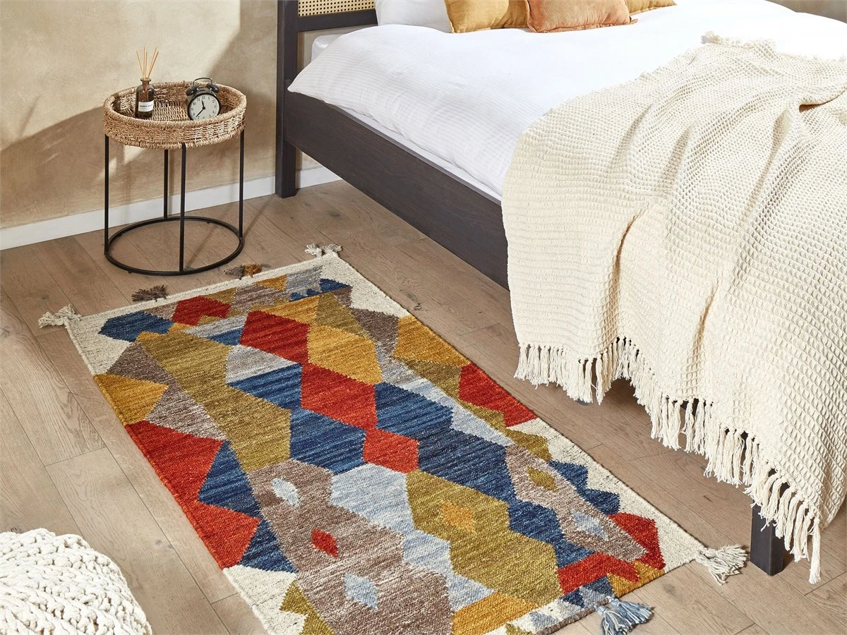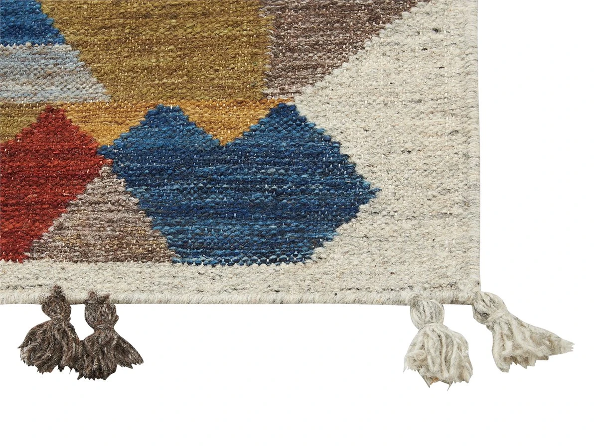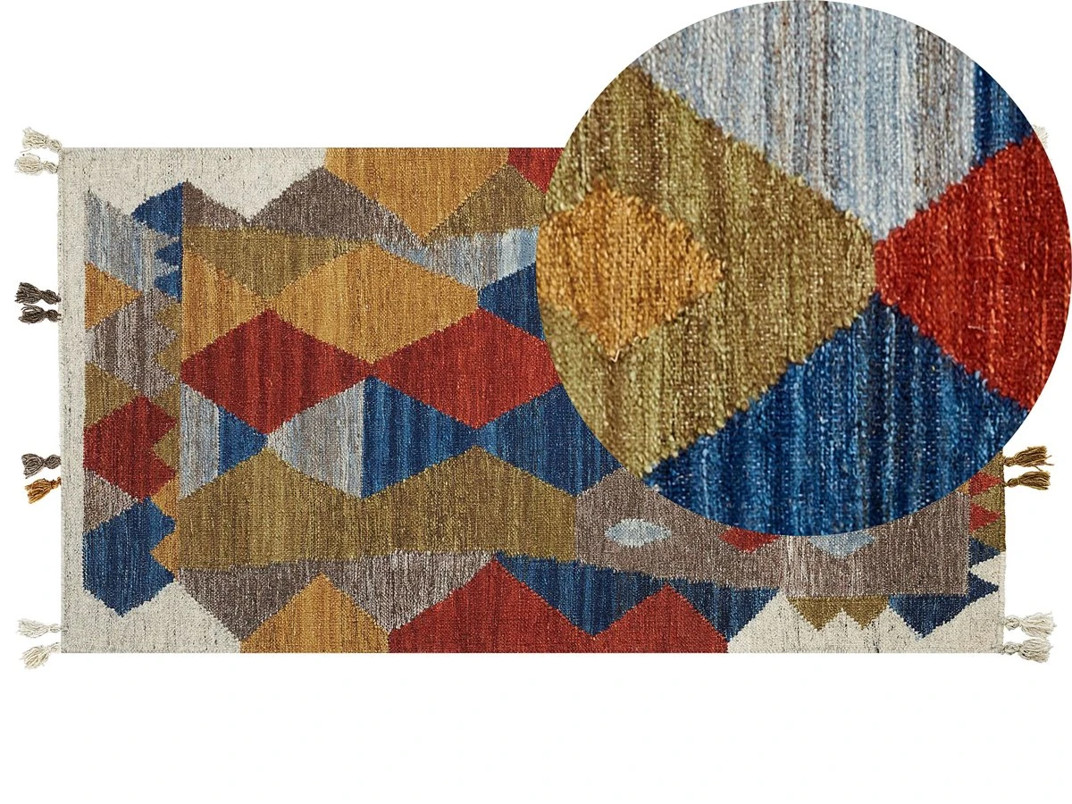 Alfombra de diseño patchwork. Añade elegancia a tu sala de estar o dormitorio con esta alfombra kilim. Está fabricada a mano a partir de lana y algodón suave al tacto. El patrón colorido en la parte frontal atrae las miradas de los invitados. Ideal para las habitaciones más concurridas de la casa. Detalles: Tipo de Producto: Kilim Estilo: Boho Color: Multicolor Tipo de material: Tejido Material principal: Lana Material adicional: Algodón Composición del Material: 80% Lana Forma: Rectangular Parte inferior antideslizante: No Densidad: 1500 Diseño: Patchwork Apto para calefacción por suelo radiante: Sí Costura: Tejido a mano Dimensiones: Altura del pelo: 1 cm Ancho: 80 cm Longitud: 150 cm Peso: 2 kg La oferta incluye: 1 x Alfombra Ventajas: Apto para calefacción por suelo radiante, Pieza muy llamativa, Diseño tradicional con un toque moderno, Acabado preciso, Materiales de la más alta calidad Información de montaje: No requiere montaje Información adicional: Después de desembalar, el producto tarda aproximadamente 72 horas en obtener la forma deseada. Para conseguir el mejor resultado, recomendamos desdoblarlo lo antes posible y colocar un peso en los extremos. Cada pieza de este modelo está hecha a mano, por lo tanto el tono y el patrón pueden variar ligeramente del modelo presentado en la imagen. Consejos de mantenimiento: Lana: 1.Para un uso cómodo, recomendamos ventilar la alfombra desempacada durante al menos unas horas (lo mejor sería uno o dos días. Esto permite que el olor natural del material se desvanezca 2.Elimine cualquier mancha inmediatamente con un paño húmedo que no manche. Limpie desde el borde hasta la mitad de la alfombra, no frote 3.Periódicamente, gire su alfombra 180 ̊ para garantizar un desgaste uniforme y evitar la decoloración causada por la exposición al sol 4.Para manchas difíciles, límpie la superficie con un paño de algodón húmedo que no manche. Si es necesario, use un líquido de lavado de lana. No moje demasiado la alfombra y sequela después de limpiar. Use solo limpiadores recomendados para alfombras. Póngase en contacto con un experto para la eliminación de manchas difíciles 5.Aspire una vez por semana con una potencia de succión media utilizando un accesorio de tapicería, en la dirección de la pila.