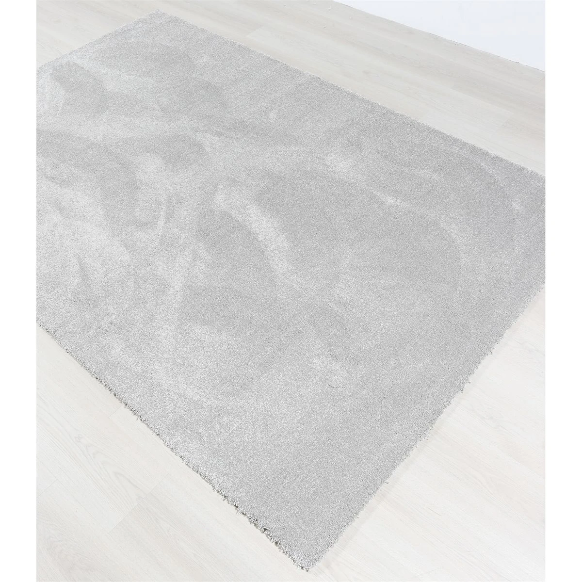 Alfombra de color liso Gris Claro de pelo medio. Su superficie tiene buen tacto y es de muy fácil limpieza, ya que se puede limpiar con cualquier producto de limpieza, incluso con lejía. Esta alfombra está fabricada con una muy buena densidad de pelo, por eso se consigue que sea mullida y con buen tacto.