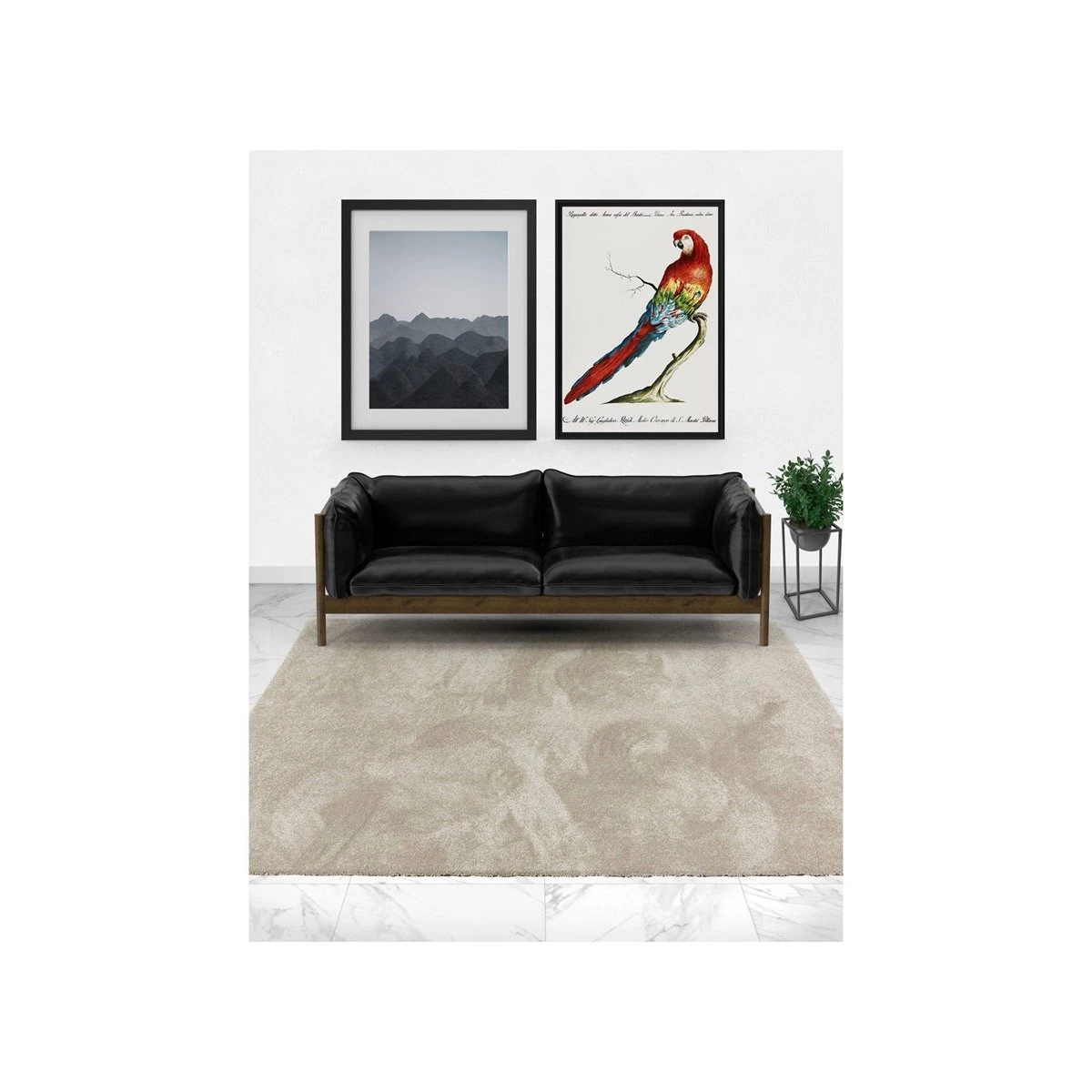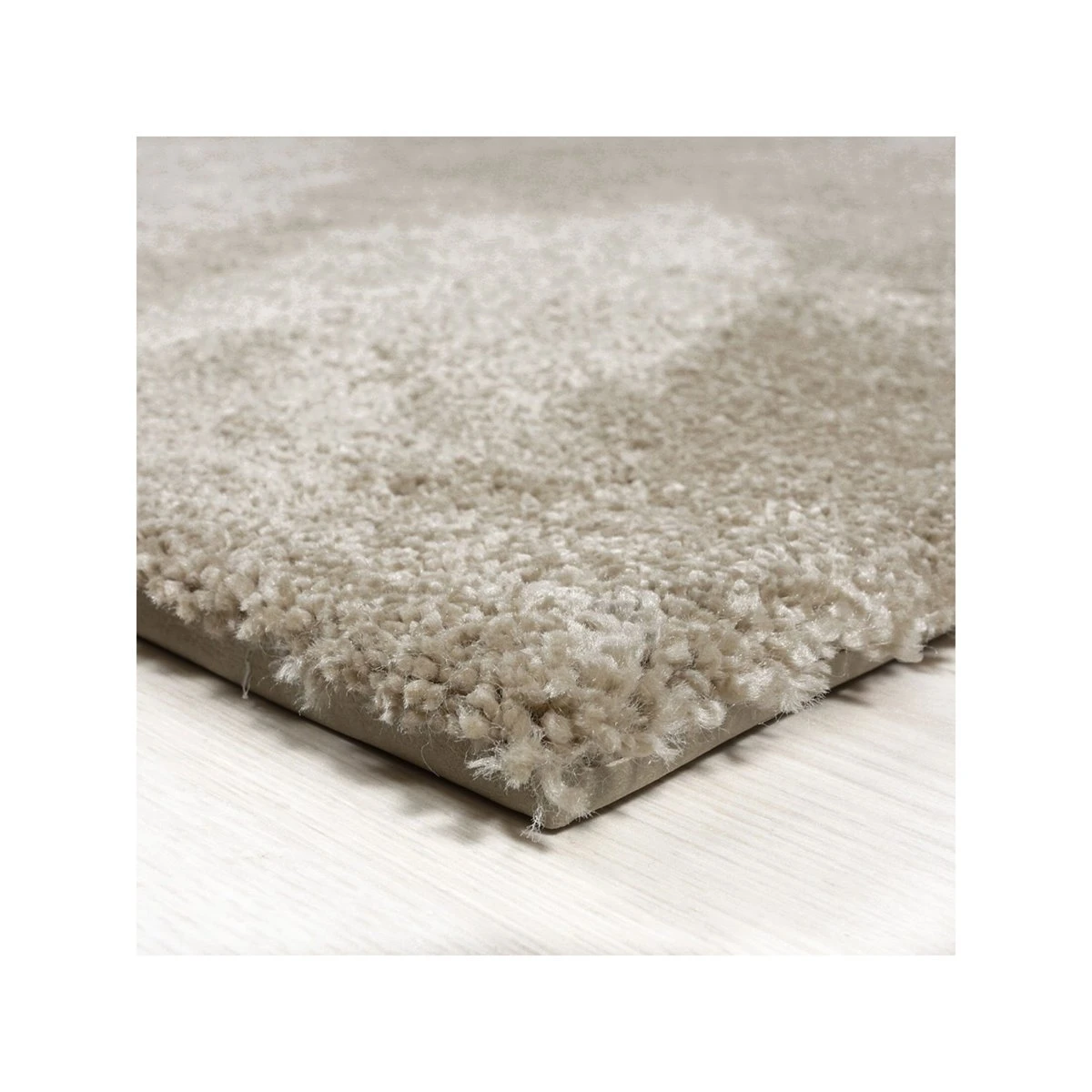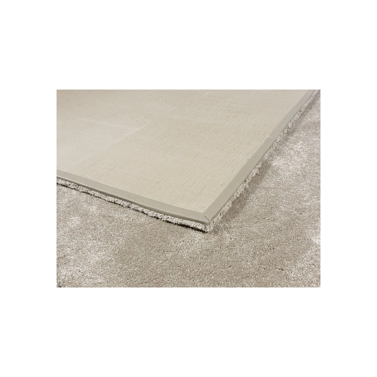 Alfombra de color liso beige de pelo medio. Su superficie tiene buen tacto y es de muy fácil limpieza, ya que se puede limpiar con cualquier producto de limpieza, incluso con lejía. Esta alfombra está fabricada con una muy buena densidad de pelo, por eso se consigue que sea mullida y con buen tacto.