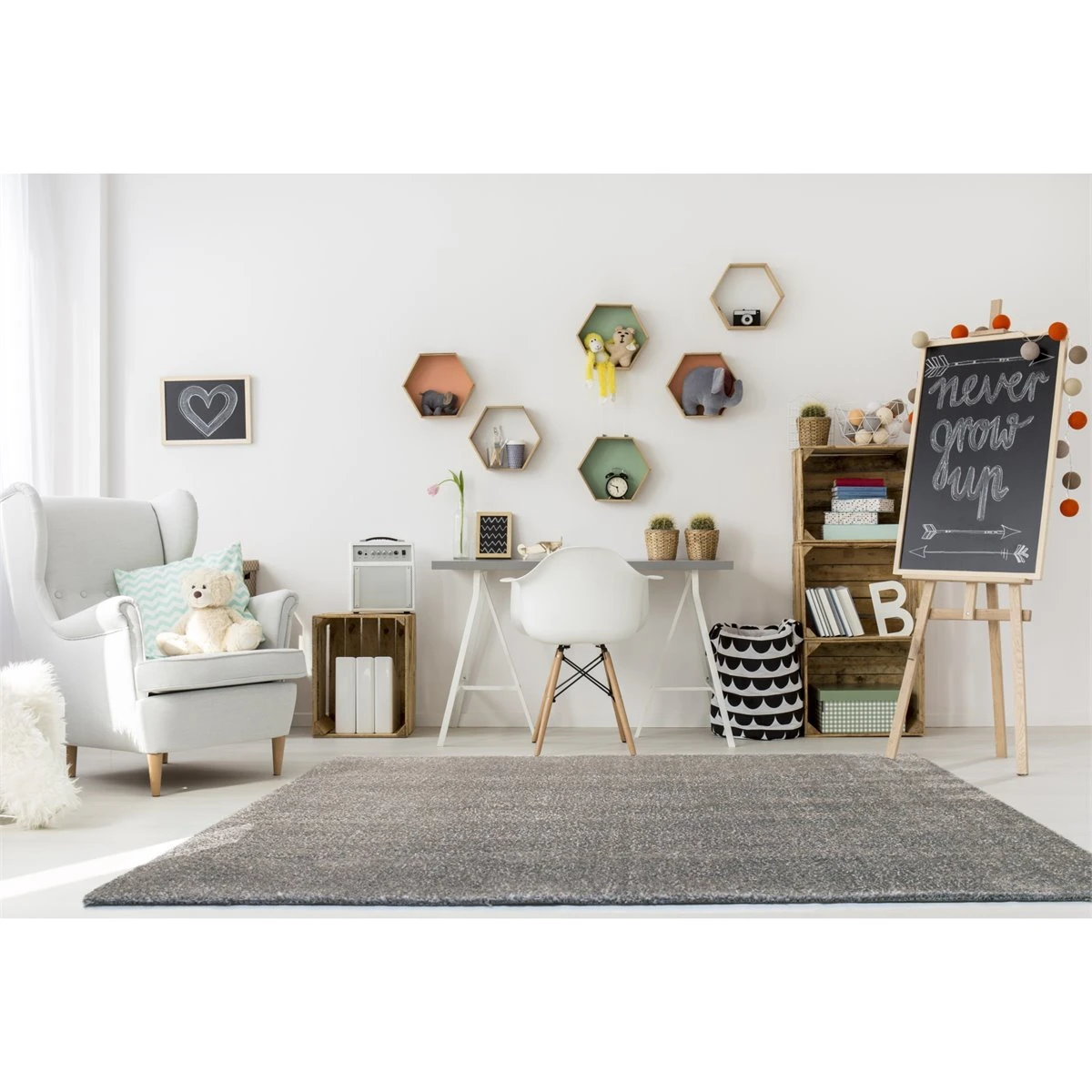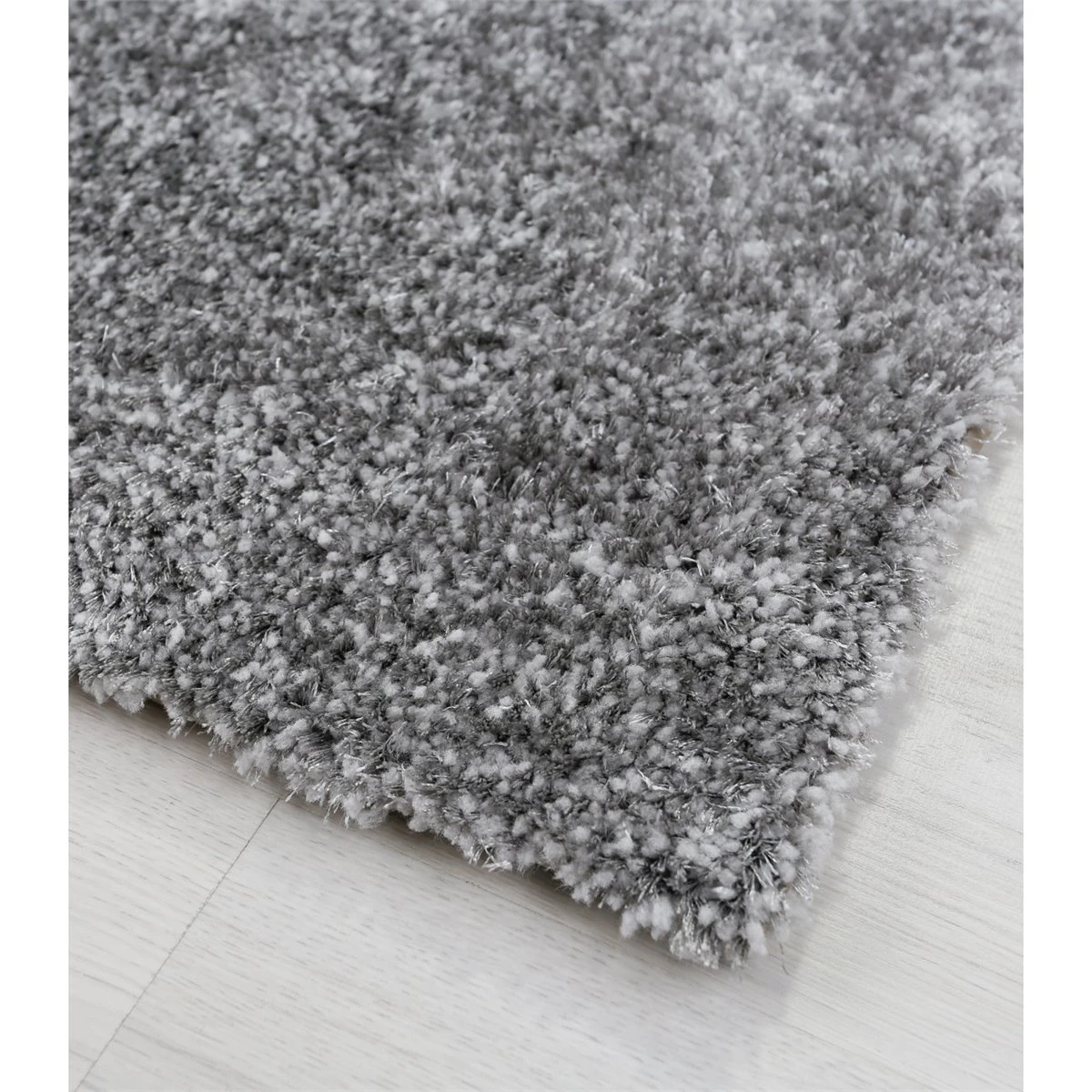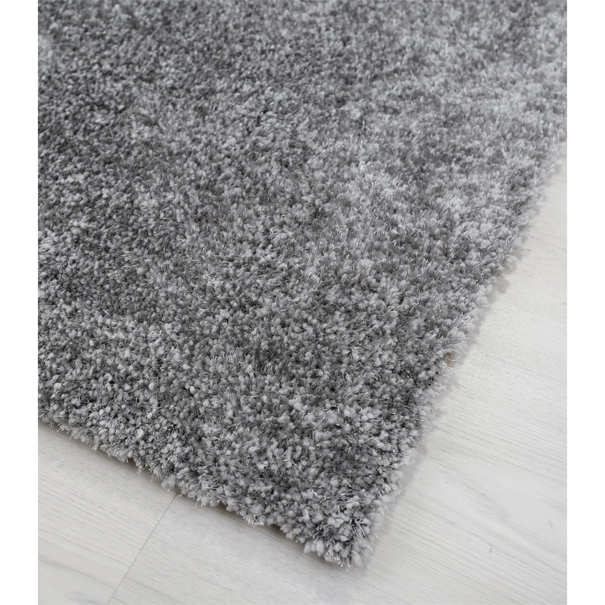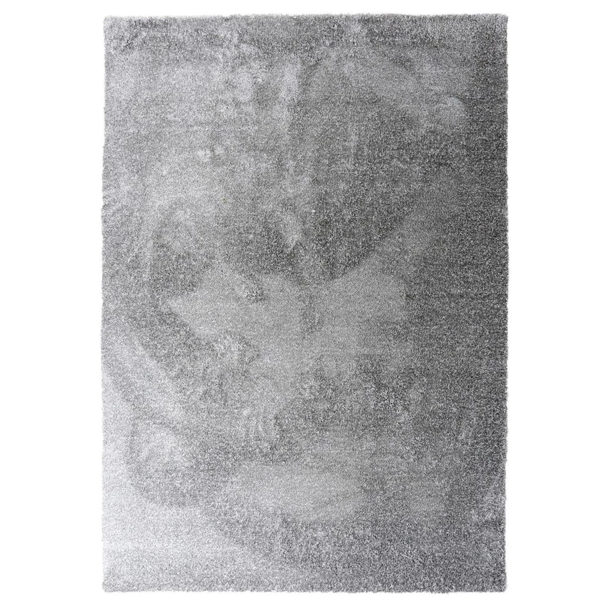 Alfombra de tacto suave y color gris plata, con efecto aguas, ideal para colocar en dormitorios, vestidores, sala o salón comedor.