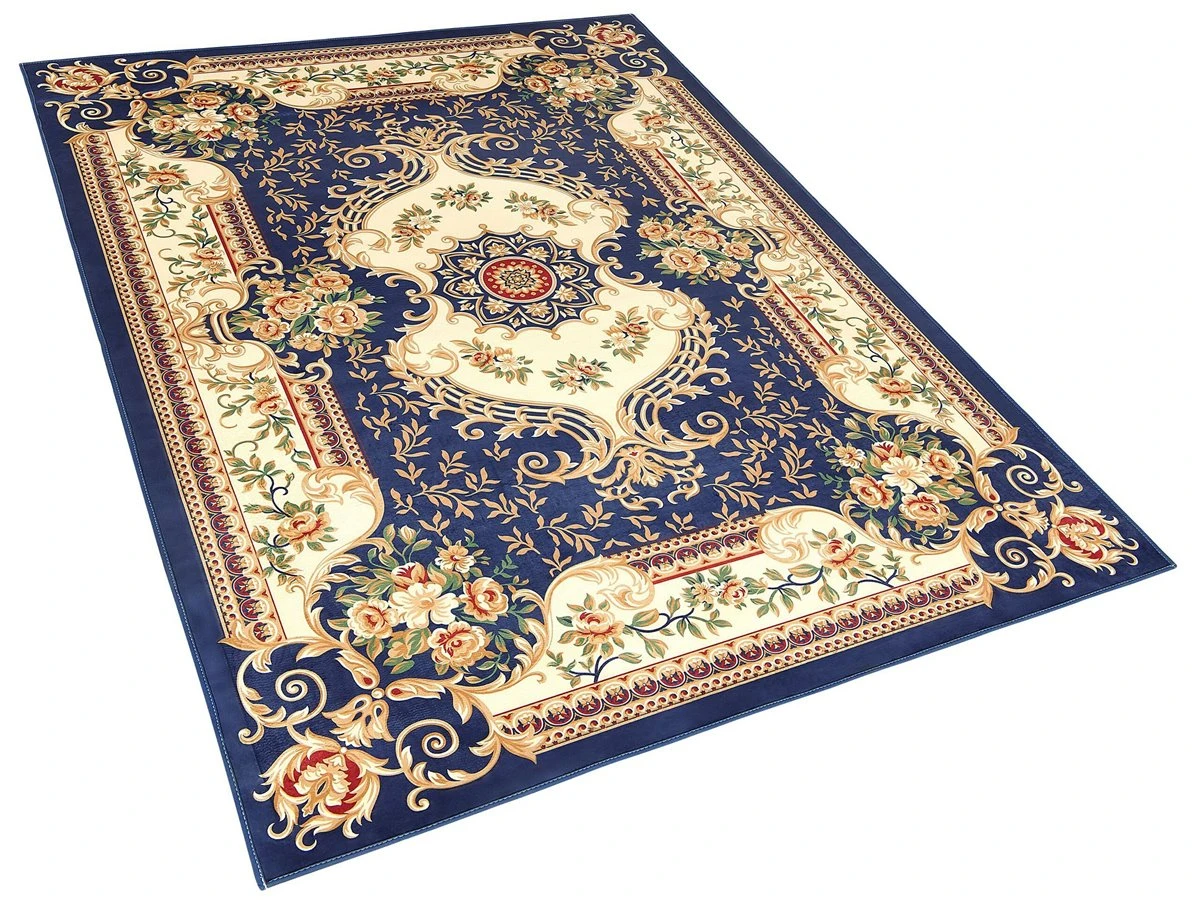 Alfombra de patrón oriental. Añade un toque vintage a tu interior con esta alfombra. Está fabricada a partir de poliéster de alta calidad. El patrón floral está inspirado en el estilo victoriano. La parte antideslizante protege de un posible resbalón. Detalles: Tipo de Producto: Alfombra de pelo corto Estilo: Tradicional Color: Multicolor Tonalidad: Azul oscuro Tipo de material: Tejido Material principal: Poliéster Material de respaldo: Poliéster Composición del Material: 100% Poliéster Forma: Rectangular Parte inferior antideslizante: Sí Densidad: 500 Diseño: Oriental Apto para calefacción por suelo radiante: No Costura: Tejido a máquina Dimensiones: Altura del pelo: 0.5 cm Ancho: 160 cm Longitud: 230 cm Peso: 4 kg La oferta incluye: 1 x Alfombra Ventajas: El fondo antideslizante evita que la alfombra se mueva, Extremadamente cómodo, Combinación de colores fascinante, Diseño tradicional con un toque moderno, Materiales de la más alta calidad Información de montaje: No requiere montaje Información adicional: Puede perder pelo de forma ocasional. Se trata de un proceso natural y no un defecto de calidad del producto. Consejos de mantenimiento: Poliéster: 1.Periódicamente, gire su alfombra 180 ̊ para garantizar un desgaste uniforme y evitar la decoloración causada por la exposición al sol 2.Para manchas difíciles, límpie la superficie con un paño de algodón húmedo que no manche. Si es necesario, use un líquido de lavado de lana. No moje demasiado la alfombra y sequela después de limpiar. Use solo limpiadores recomendados para alfombras. Póngase en contacto con un experto para la eliminación de manchas difíciles 3.Aspire una vez por semana con una potencia de succión media utilizando un accesorio de tapicería, en la dirección de la pila 4.Para un uso cómodo, recomendamos ventilar la alfombra desempacada durante al menos unas horas (lo mejor sería uno o dos días. Esto permite que el olor natural del material se desvanezca 5.Elimine cualquier mancha inmediatamente con un paño húmedo que no manche. Limpie desde el borde hasta la mitad de la alfombra, no frote.