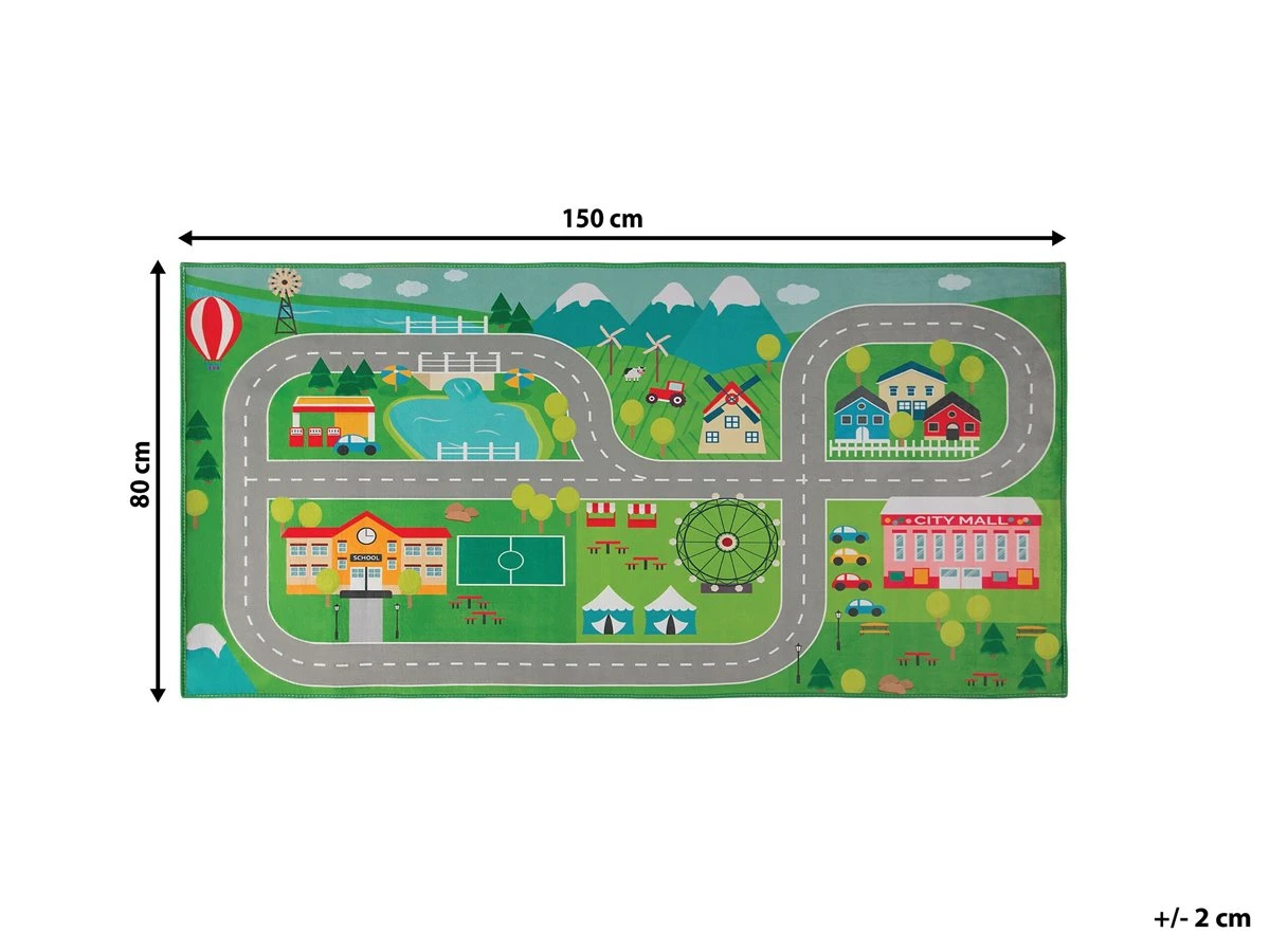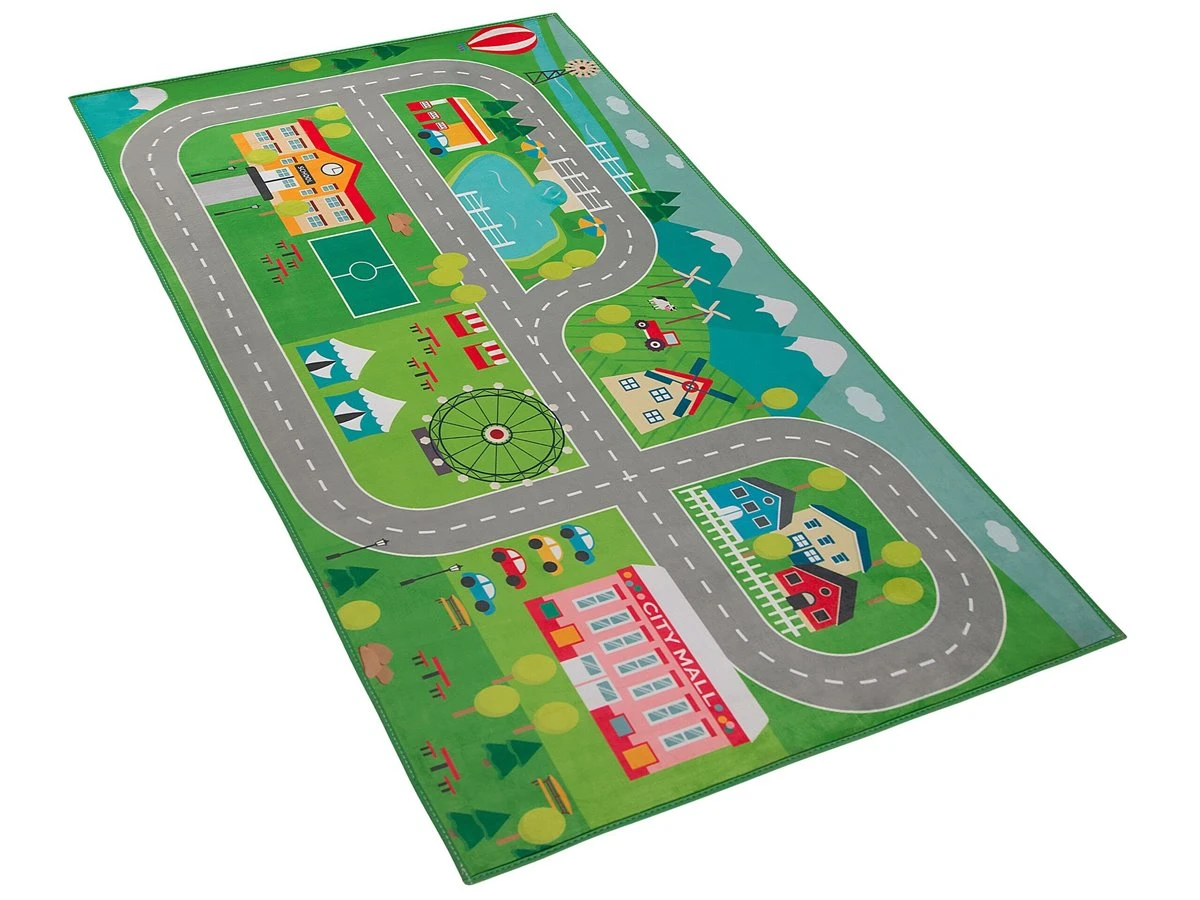Alfombra de habitación infantil. Esta alfombra es ideal para cualquier habitación infantil o sala de juegos. Está fabricada a partir de poliéster de alta calidad y bajo mantenimiento. El patrón de ciudad fomenta la imaginación de los más pequeños. La parte antideslizante protege de un posible resbalón. Detalles: Tipo de Producto: Alfombra para niños Color: Verde Tipo de material: Tejido Material principal: Poliéster Material de respaldo: Poliéster Composición del Material: 100% Poliéster Forma: Rectangular Parte inferior antideslizante: Sí Densidad: 200 Diseño: Impreso Apto para calefacción por suelo radiante: Sí Costura: Tejido a máquina Dimensiones: Altura del pelo: 1 cm Ancho: 80 cm Longitud: 150 cm Peso: 1 kg La oferta incluye: 1 x Alfombra Ventajas: Apto para calefacción por suelo radiante, El fondo antideslizante evita que la alfombra se mueva, Colores vivos, Patrón decorativo llamativo, Gran durabilidad Información de montaje: No requiere montaje Información adicional: Después de desembalar, el producto tarda aproximadamente 72 horas en obtener la forma deseada. Para conseguir el mejor resultado, recomendamos desdoblarlo lo antes posible y colocar un peso en los extremos. Consejos de mantenimiento: Poliéster: 1.Para un uso cómodo, recomendamos ventilar la alfombra desempacada durante al menos unas horas (lo mejor sería uno o dos días. Esto permite que el olor natural del material se desvanezca 2.Elimine cualquier mancha inmediatamente con un paño húmedo que no manche. Limpie desde el borde hasta la mitad de la alfombra, no frote 3.Periódicamente, gire su alfombra 180 ̊ para garantizar un desgaste uniforme y evitar la decoloración causada por la exposición al sol 4.Para manchas difíciles, límpie la superficie con un paño de algodón húmedo que no manche. Si es necesario, use un líquido de lavado de lana. No moje demasiado la alfombra y sequela después de limpiar. Use solo limpiadores recomendados para alfombras. Póngase en contacto con un experto para la eliminación de manchas difíciles 5.Aspire una vez por semana con una potencia de succión media utilizando un accesorio de tapicería, en la dirección de la pila.