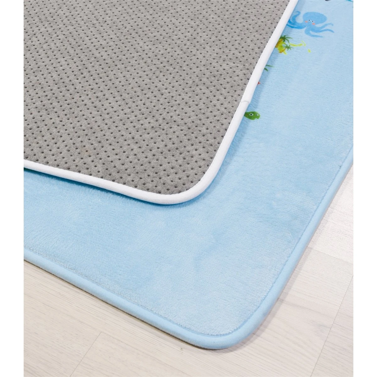 Su base es un fieltro de puntos de PVC antideslizante. Su interior es un foam especial que aporta más confort para pasar largos ratos jugando encima.