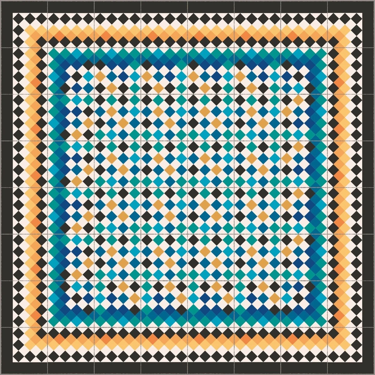 Alfombra Vinilo Baldosas Hidráulicas Modernistas Multicolor 120x120cm KARMOY