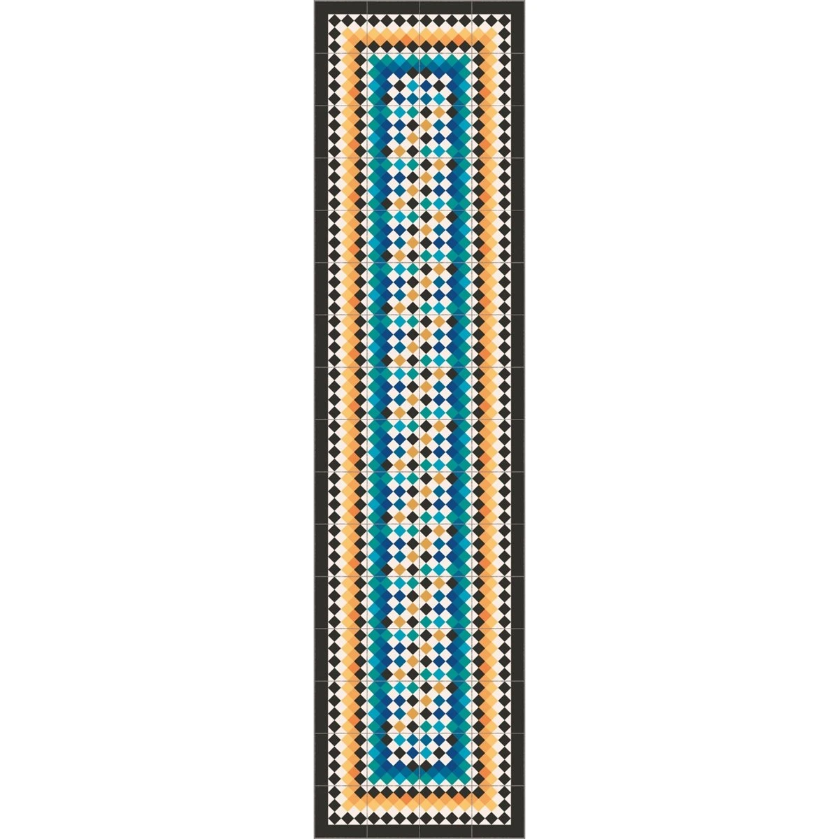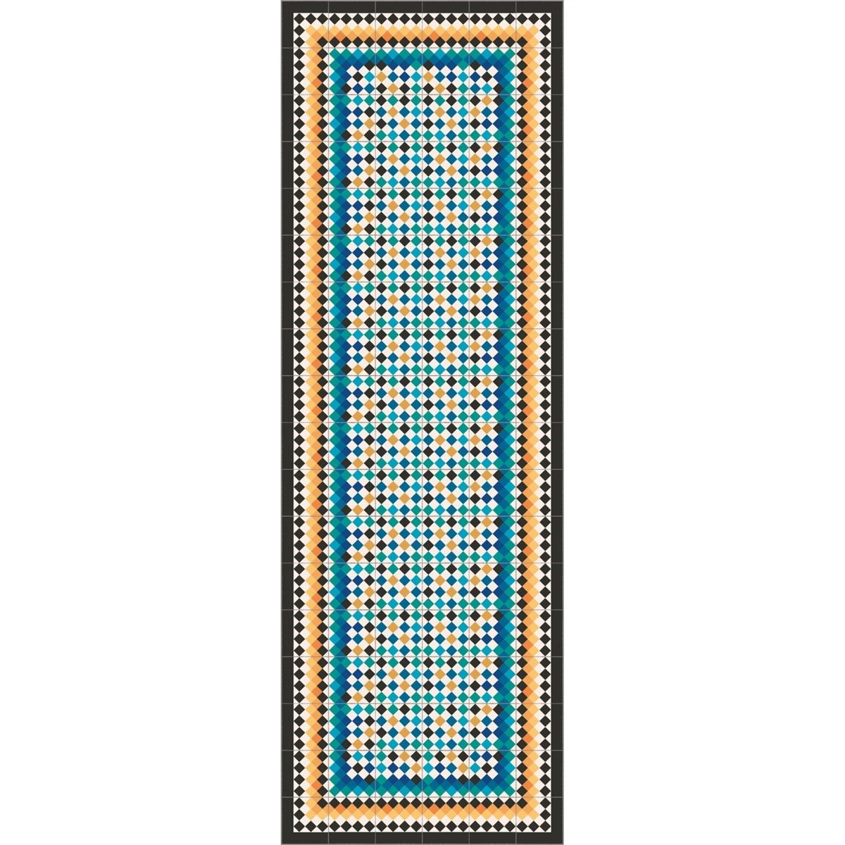 Alfombra vinílica de alta calidad de estilo modernista totalmente a medida modelo Karmoy. Una alfombra elegante, con una combinación de colores muy bonita. Una estupenda opción como alfombra de vinilo de cocina, hall, sala o salón. El diseño se adapta a la medida. Alfombra fregable con agua y jabón neutro.