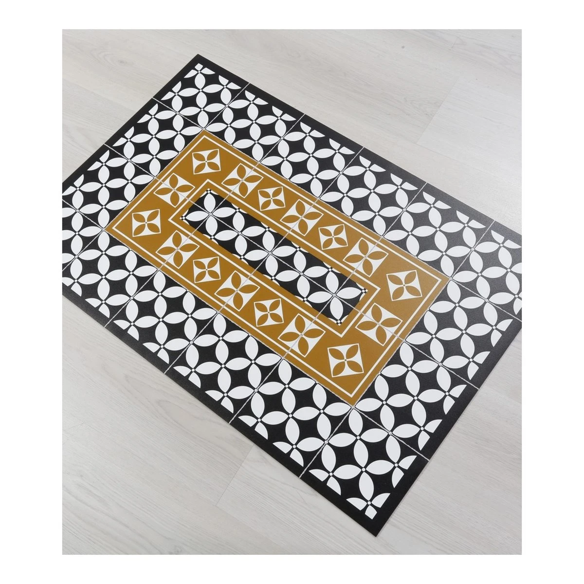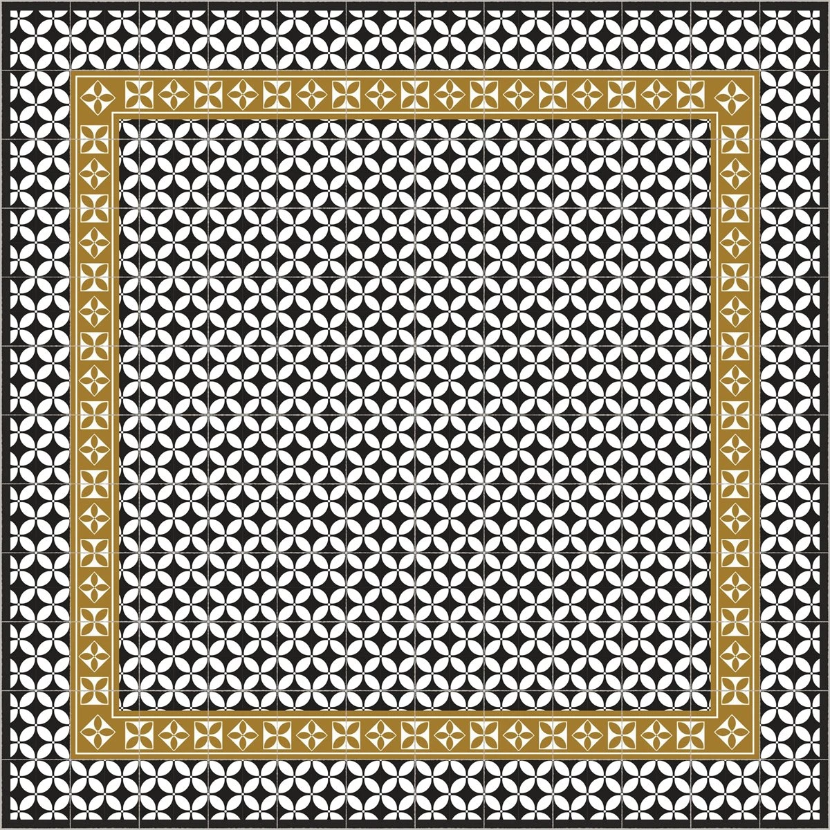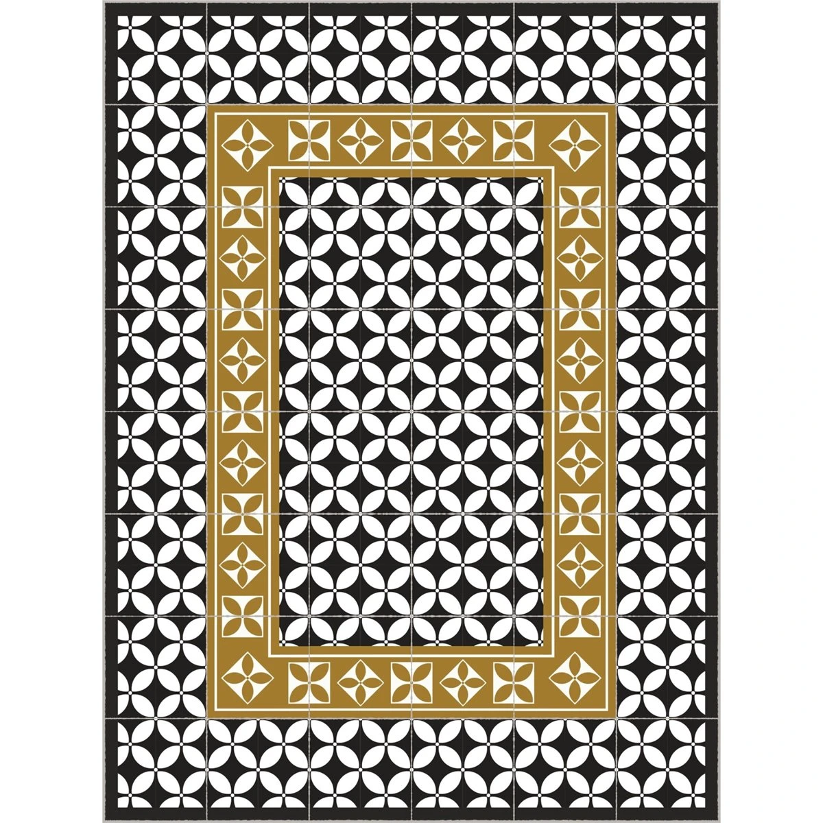 Alfombra Vinilo De Baldosas Hidráulicas Modernistas Negro 180x180cm LABUAN