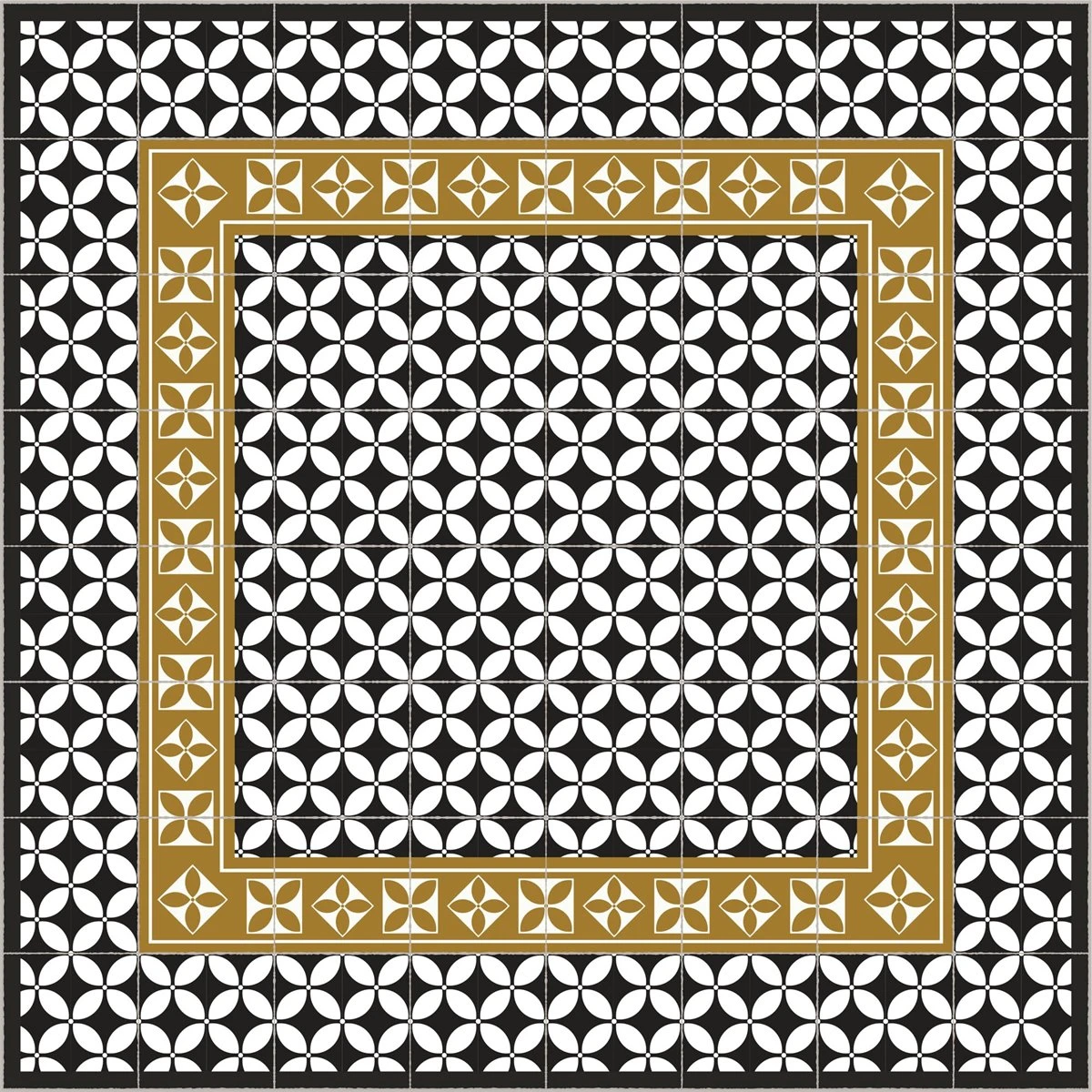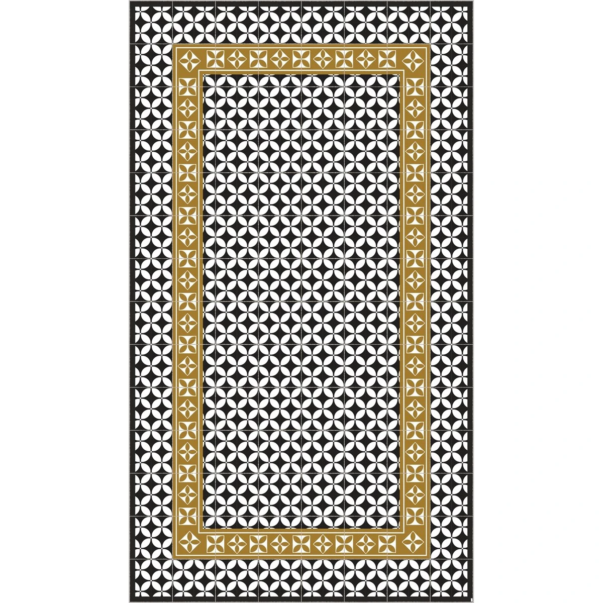 Alfombra Vinilo De Baldosas Hidráulicas Modernistas Negro 60x240cm LABUAN