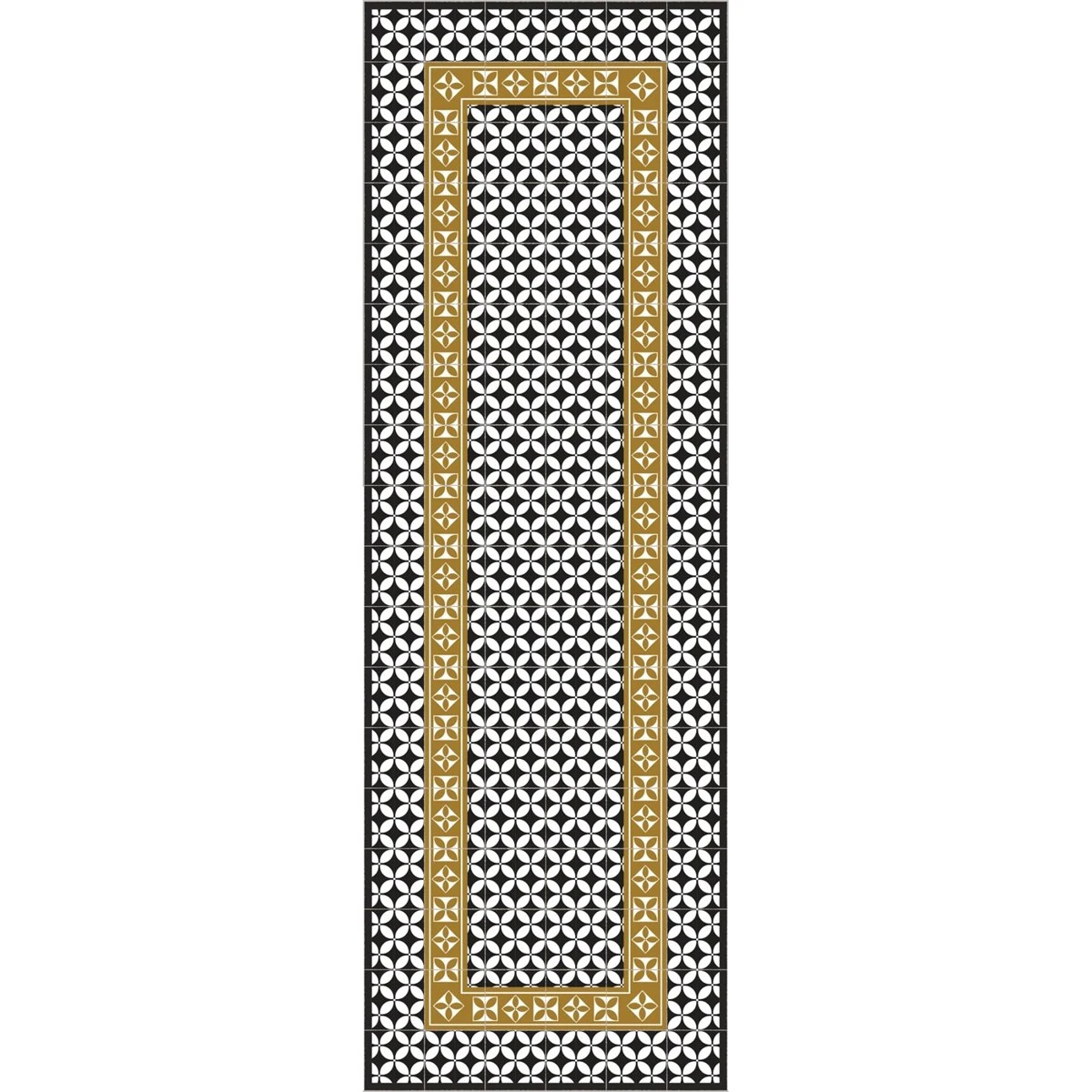 Alfombra vinílica de alta calidad de estilo modernista totalmente a medida modelo Labuan. Una alfombra elegante, con una combinación de colores muy bonita. Una estupenda opción como alfombra de vinilo de cocina, hall, sala o salón. El diseño se adapta a la medida. Alfombra fregable con agua y jabón neutro.
